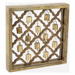 New ๐ DecMode Lattice-Patterned Wooden Wall Decor With Metal Bells ๐