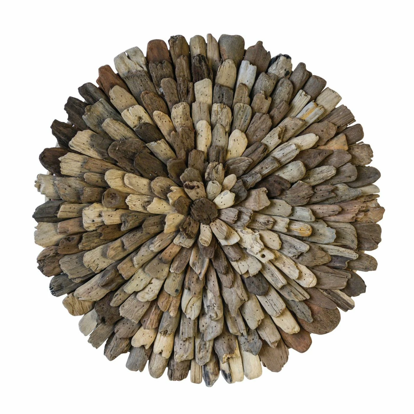 The 3R Studios Driftwood Sunburst Wall Sculpture features a sturdy driftwood construction. This sunburst-style wall sculpture makes a statement, working well on a gallery wall or standing on its own.