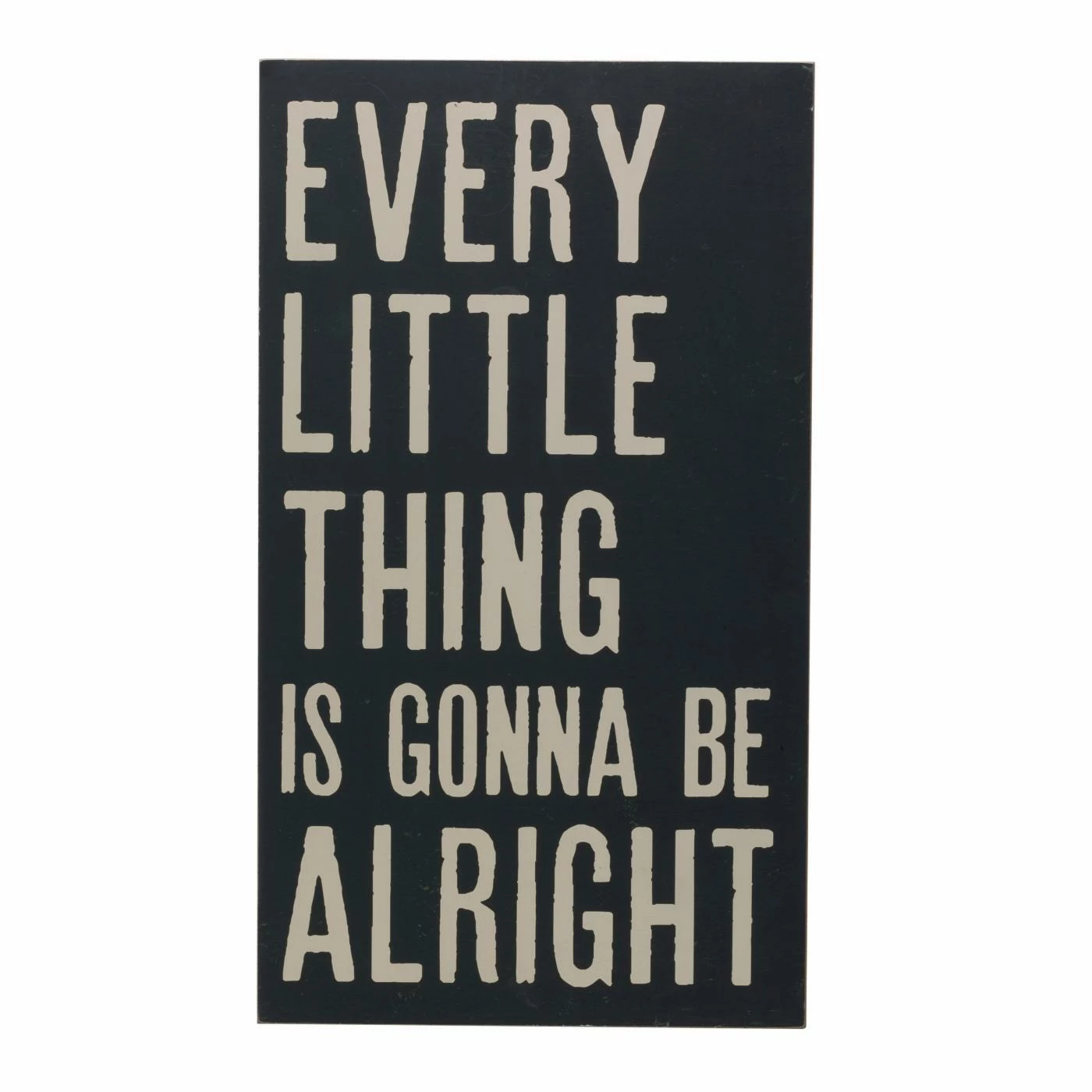 Let your guests know how you really feel with the 3R Studios Every Little Thing is Gonna Be Alright Wood Wall Decor. This upbeat wall dΓ©cor reminds you that EVERY LITTLE THING IS GONNA BE ALRIGHT whenever you look at it. The letting looks like it’s been hand stenciled for a unique, slightly rustic feel. No assembly is required before hanging this up on your wall. The sturdy wood can withstand the hustle and bustle of every day life on top of matching most sense of style.