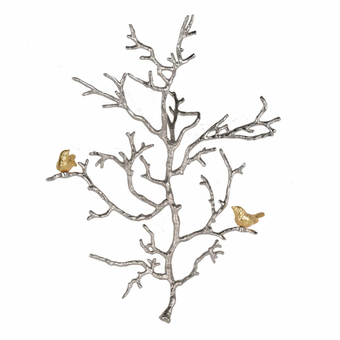 Bring some of the outdoors into your home by hanging the AB Home Silver Alterlier Branch Wall Sculpture on your wall. This silver and gold sculpture depicts birds on branches.