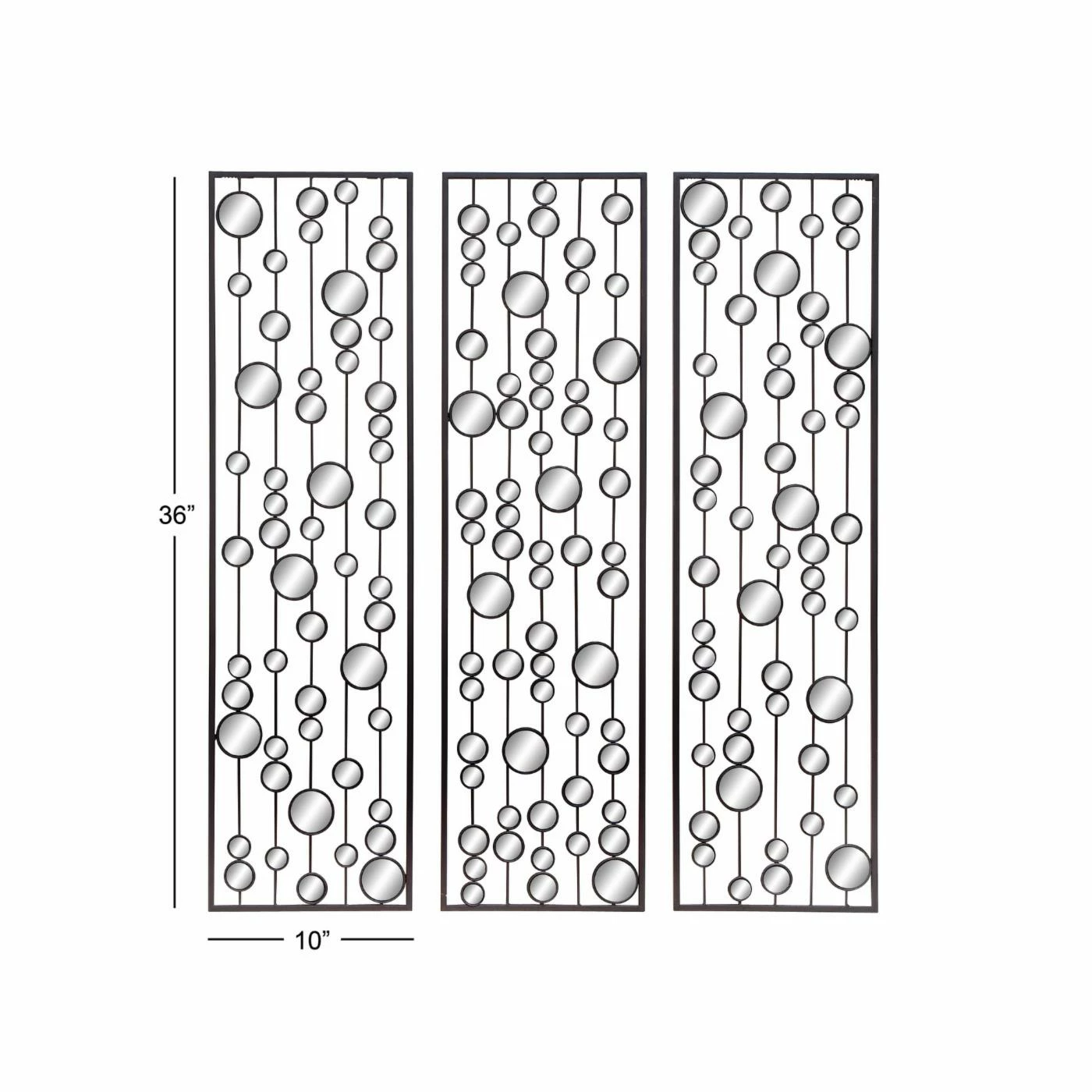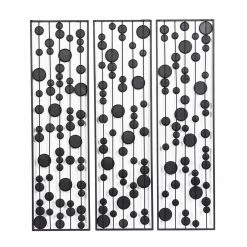 Bubbling with a beautiful reflective charm, the DecMode 3 Piece Framed Metal & Mirror Wall Sculpture – Circles & Lines features a framed open design that’s chic and modern. Multi-sized floating circular mirrors create an amazing, eye-catching design on these wall sculpture panels.