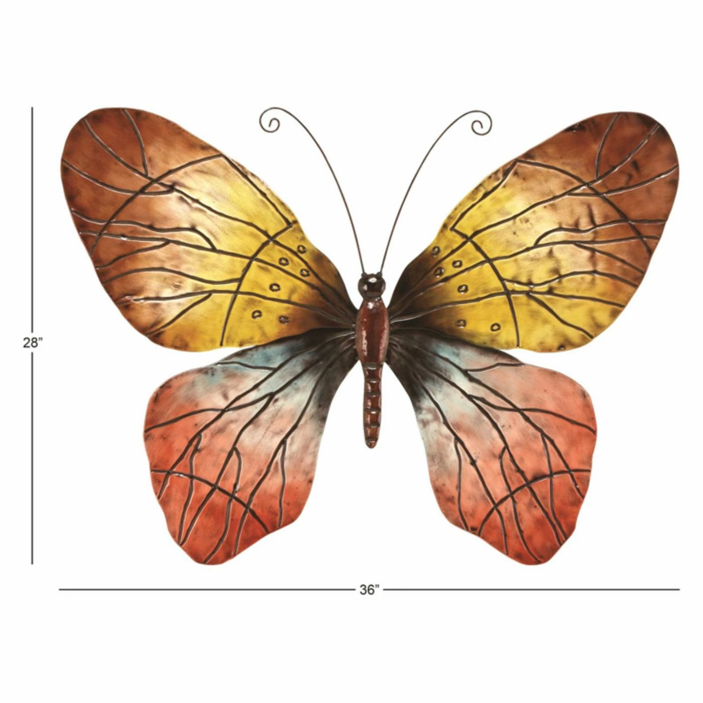 Softly blending shades of brown, blue, pink, and yellow lend sweet charm to the DecMode Metal Butterfly Wall Sculpture – Multicolor. Intricate wing detailing lends textural appeal to this delightfully whimsical butterfly wall art.