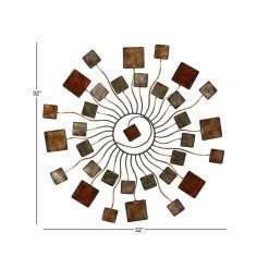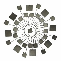 Bursting with radiant color and charm, the DecMode Metal Geometric Sun Wall Sculpture lends a vibrant energy to your decor. Wavy wire rays finished with neutrally hued iron squares offer plenty of visual movement and interest to this unique wall sculpture.