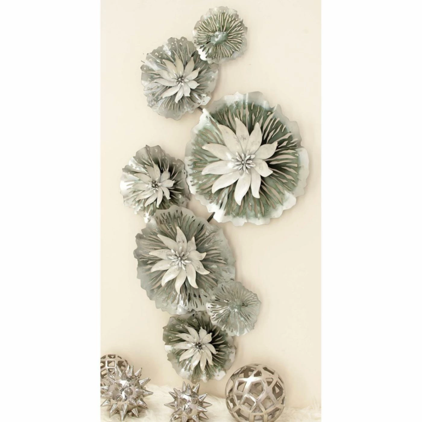 Blending contemporary design with organic shapes, the DecMode Metal Lily Pad Wall Sculpture is a gorgeous choice to breathe new life into any room. This chic wall sculpture is made of iron and features geometric-shaped lily pads finished in soft shades of white and gray.