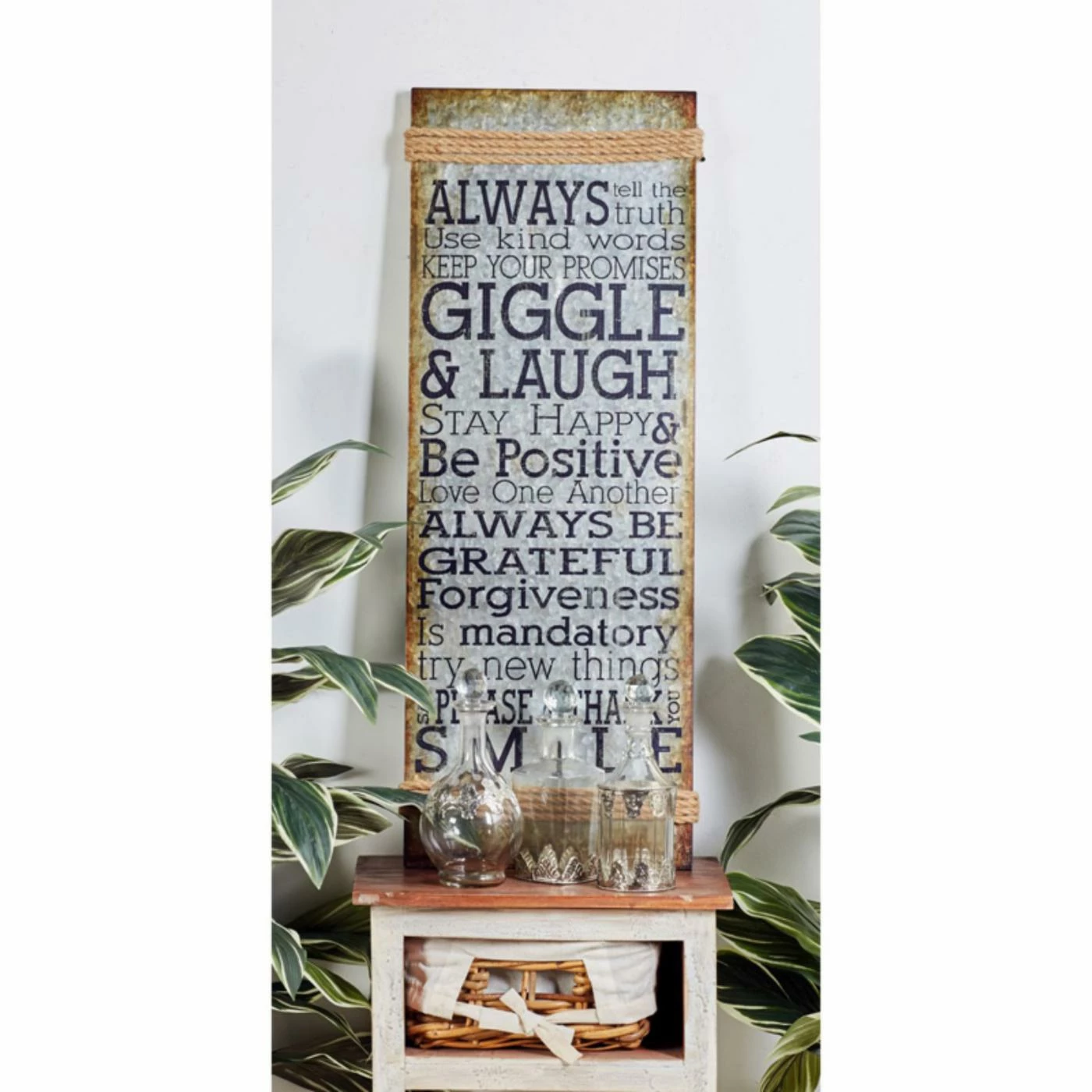 Add a bit of cheerful style to your casual decor with the DecMode Metal Rope Wall Sign. This inspirational sign shows off the beauty of typography with a motivational message.