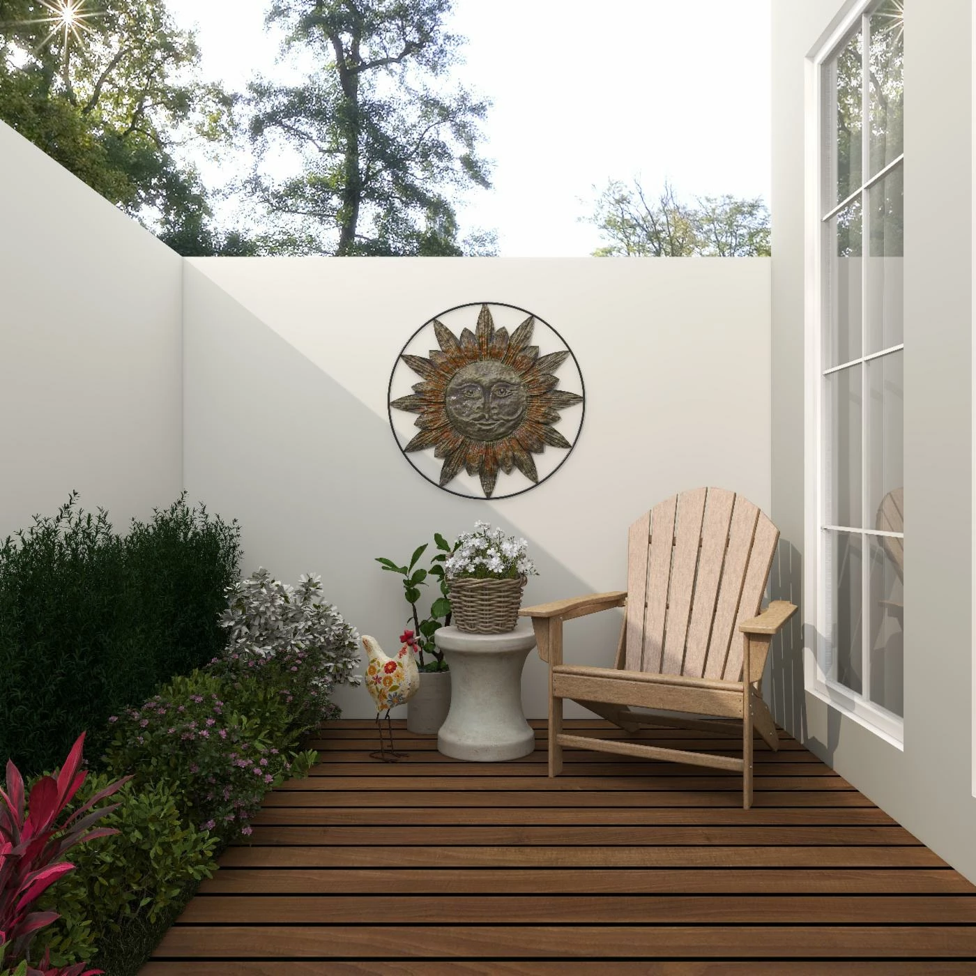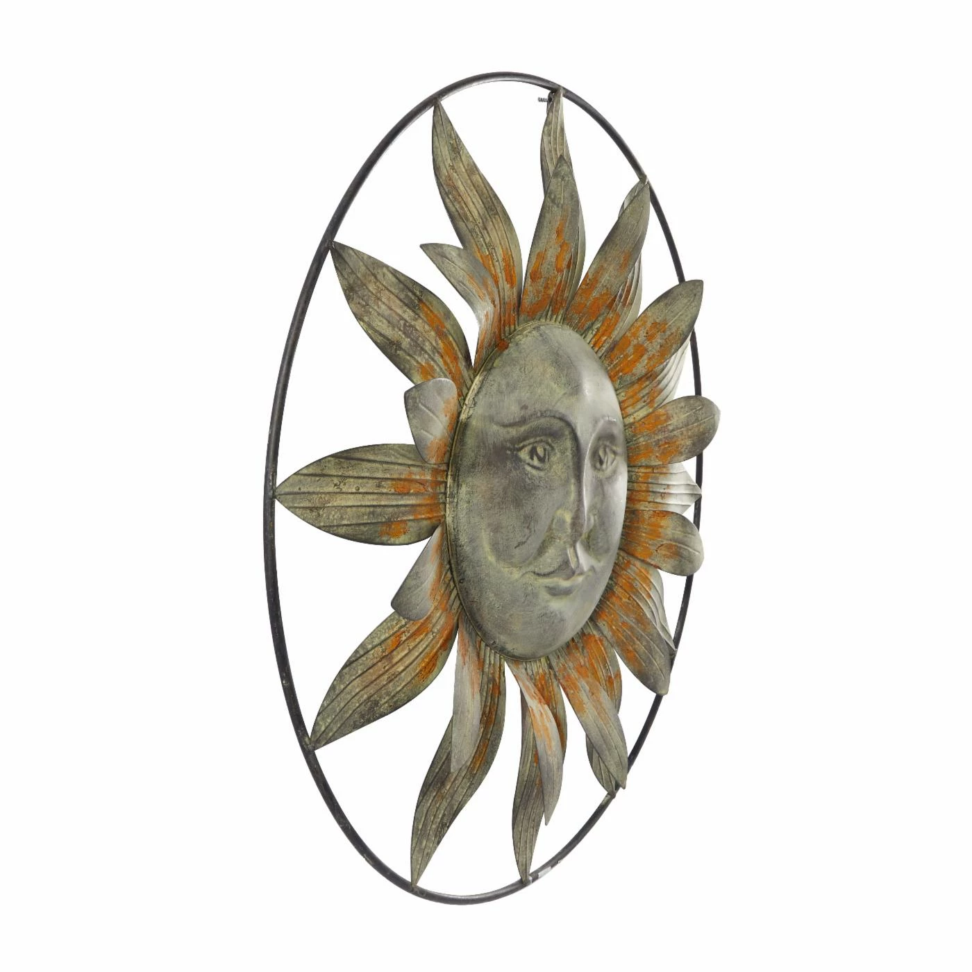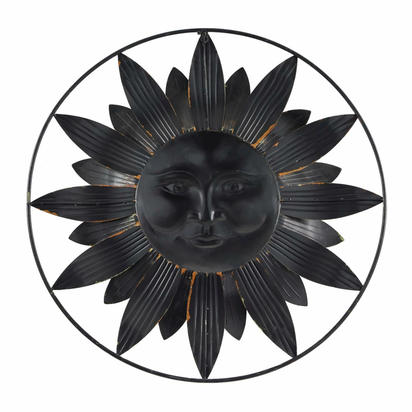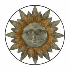 The DecMode Metal Sun Wall Sculpture – Brownβs celestial, iron-crafted design is set into a round iron frame to accent your wall in three-dimensional artistic style. This peaceful sunβs rays resemble flower petals to add earthy, natural appeal to this pretty textured wall art piece. Itβs finished in warm, rich distressed bronze to create a timelessly sophisticated piece with a charming touch.