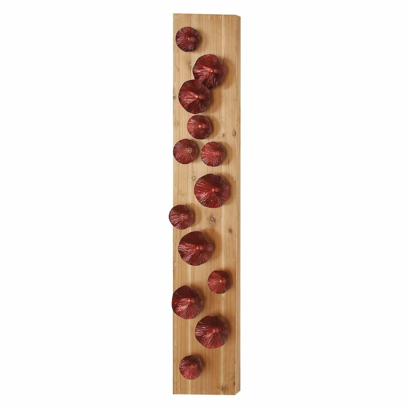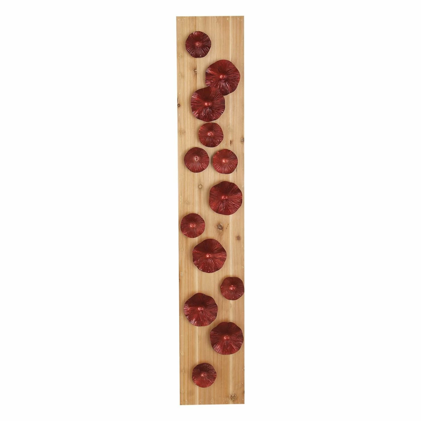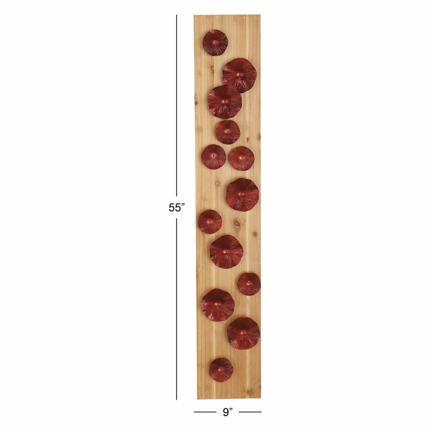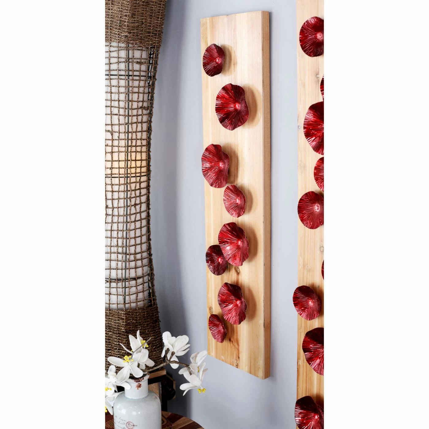 The DecMode Natural Wood and Iron Flowers Rectangular Wall Decor features a cascading floral design that will add a soft, nature-centric air to your space. The iron flowers are designed with textured detail to enhance the look, and the base is made from genuine Chinese fir with a versatile light brown finish.
