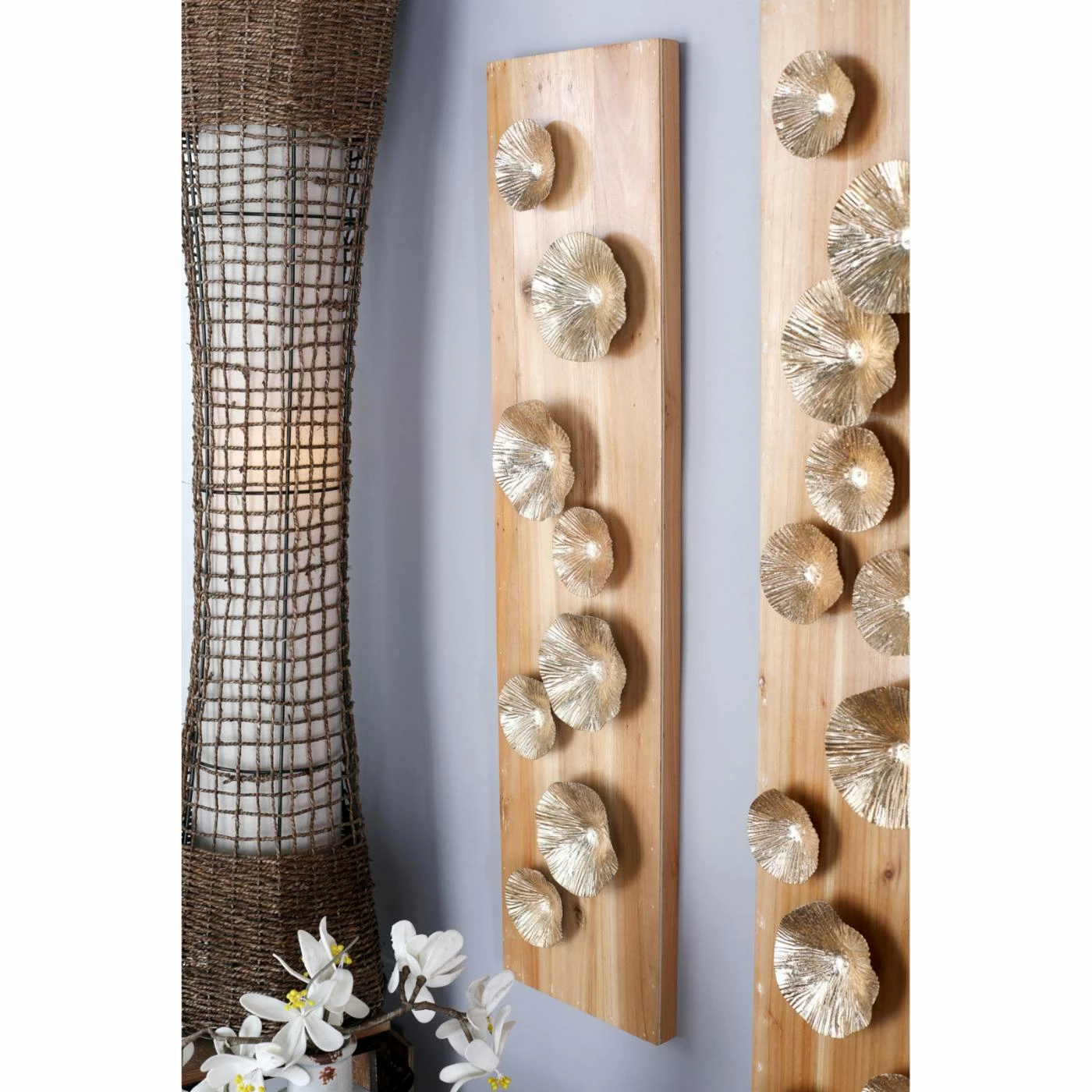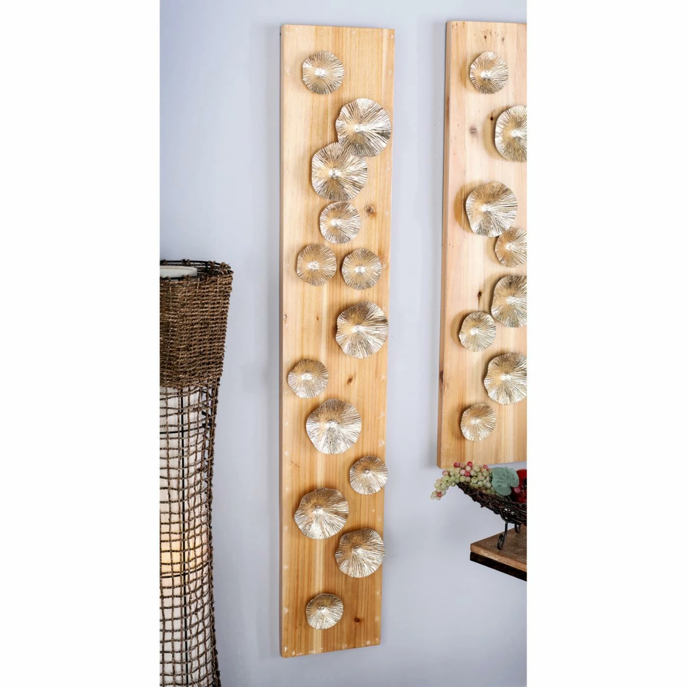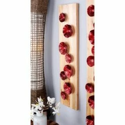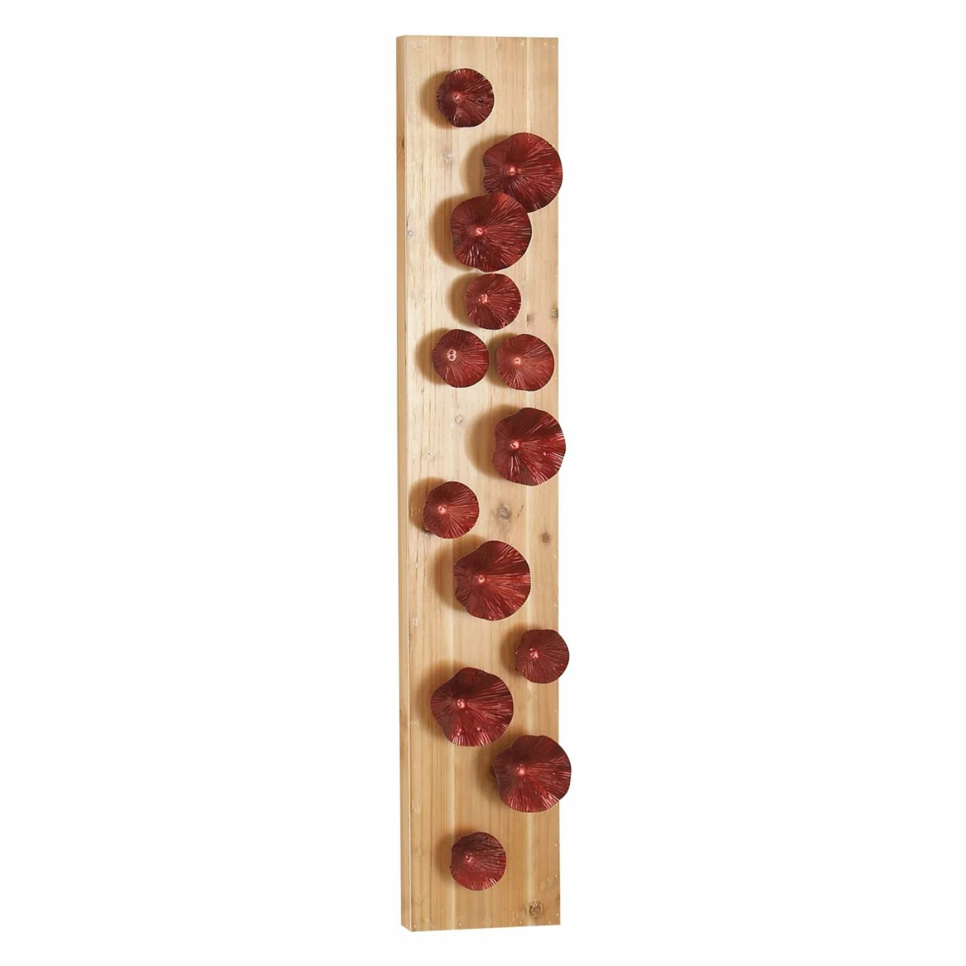The DecMode Natural Wood and Iron Flowers Rectangular Wall Decor features a cascading floral design that will add a soft, nature-centric air to your space. The iron flowers are designed with textured detail to enhance the look, and the base is made from genuine Chinese fir with a versatile light brown finish.