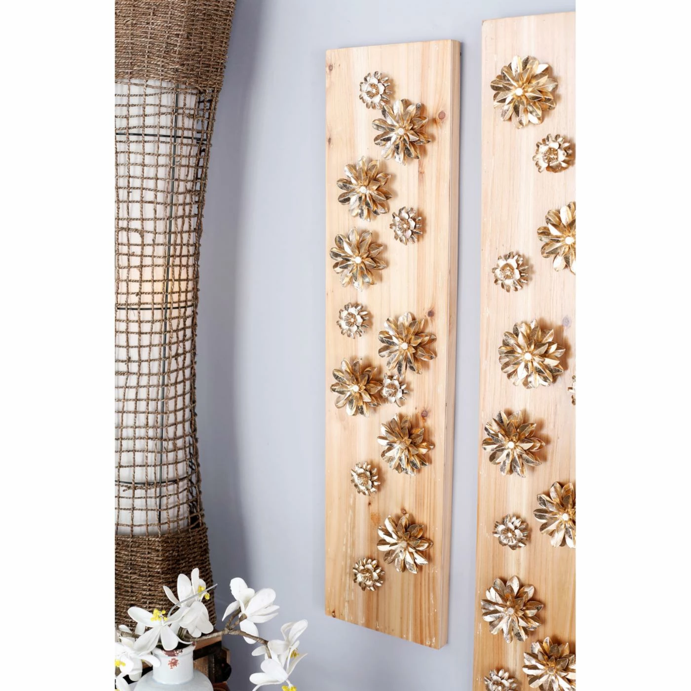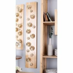 Add dimension to your walls with the DecMode Natural Wood and Iron Petaled Flowers Rectangular Wall Decor. It’s designed with a slab of Chinese fir that intricately detailed flowers arranged in a fluttering design. This piece of wall dΓ©cor complements a rustic or cottage theme.