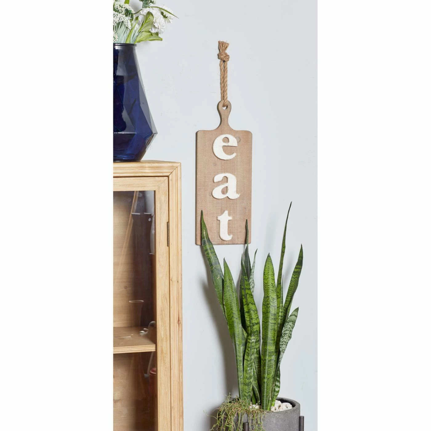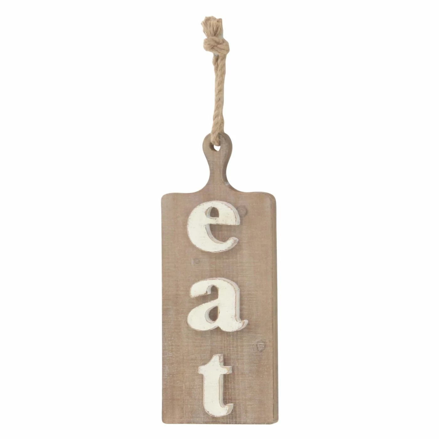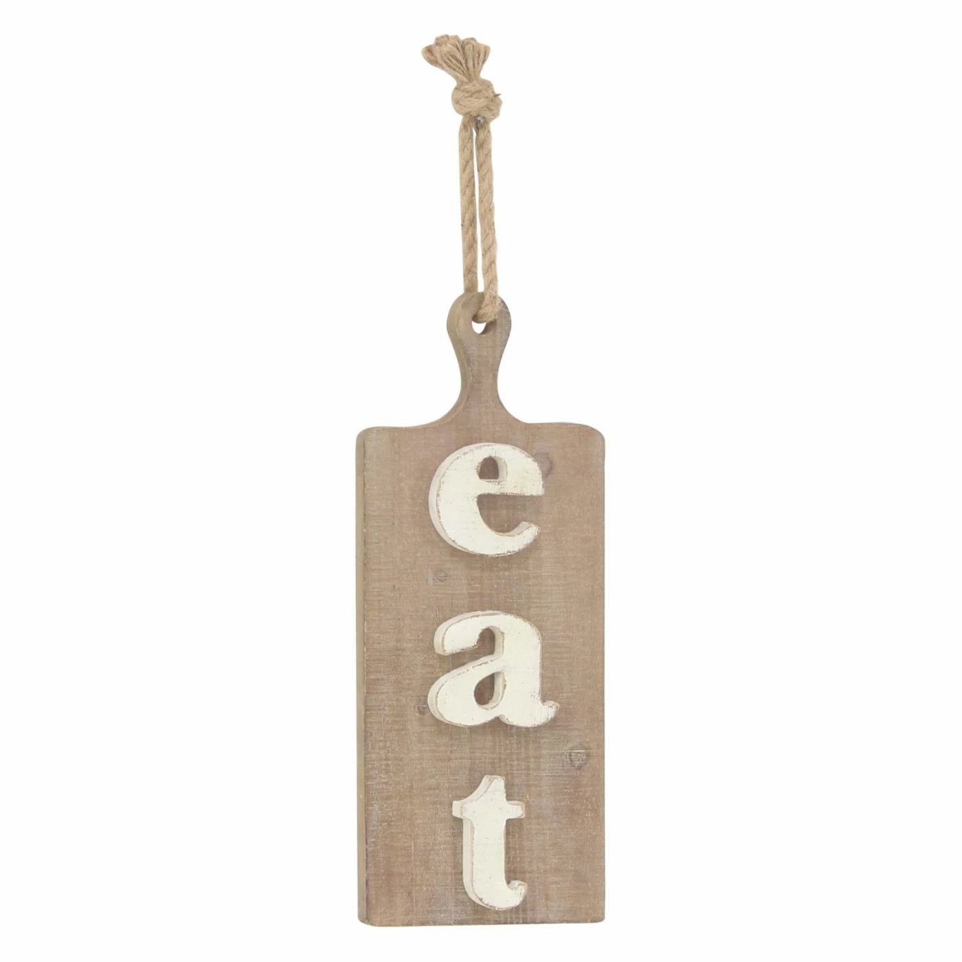 The DecMode Pine Wood Eat Wall Sign is made from Chinese red pine wood, for a look that’s charmingly rustic. This wall sign has an attractive cheese paddle silhouette with raised lettering on the face. The white finish boasts distressed details to create an authentic weathered look.