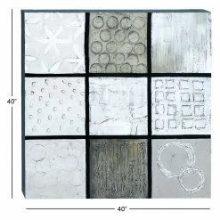 Welcome modern style into your space with the DecMode Pine Wood Geometric Canvas Art. This canvas features four distinct works in one, each featuring a grid-style geometric design. Neutral gray and black hues allow this sturdy canvas to complement many spaces. This modern piece features a sturdy wood back for durability.