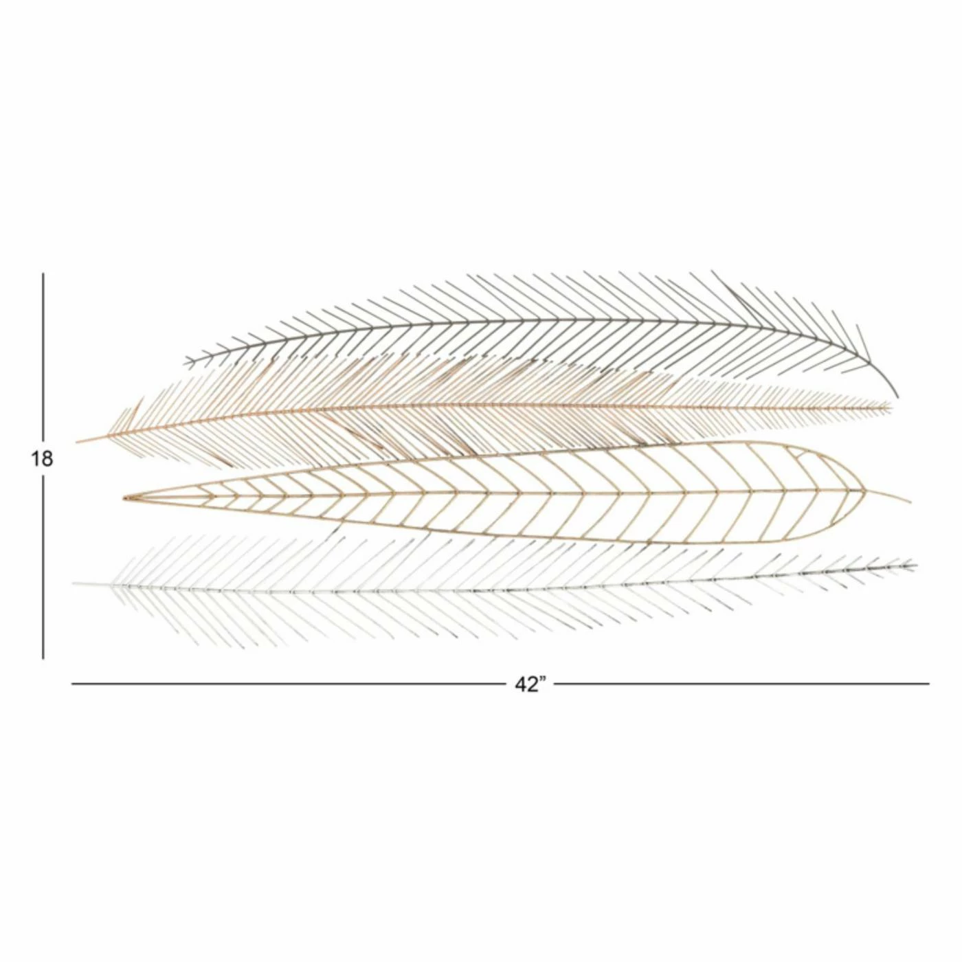 Beautifully and elegantly crafted from wire, the DecMode Polished Metal Feather & Leaf Wall Sculpture is a simple accent piece that brings big style to your space. Featuring a contrasting feather and leaf design, you will appreciate the artful appeal this wall sculpture adds to your decor.