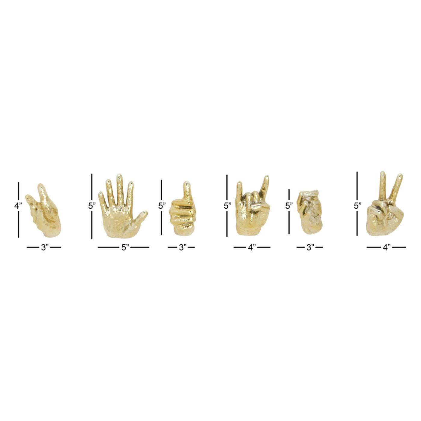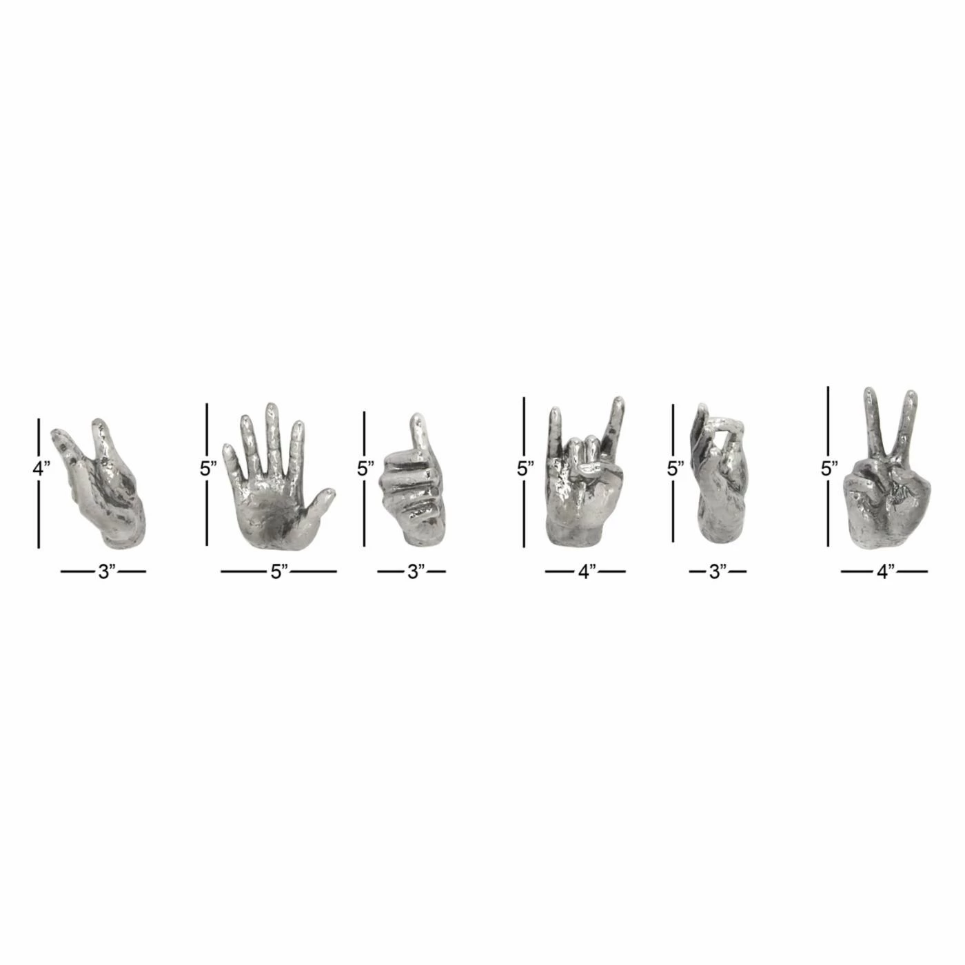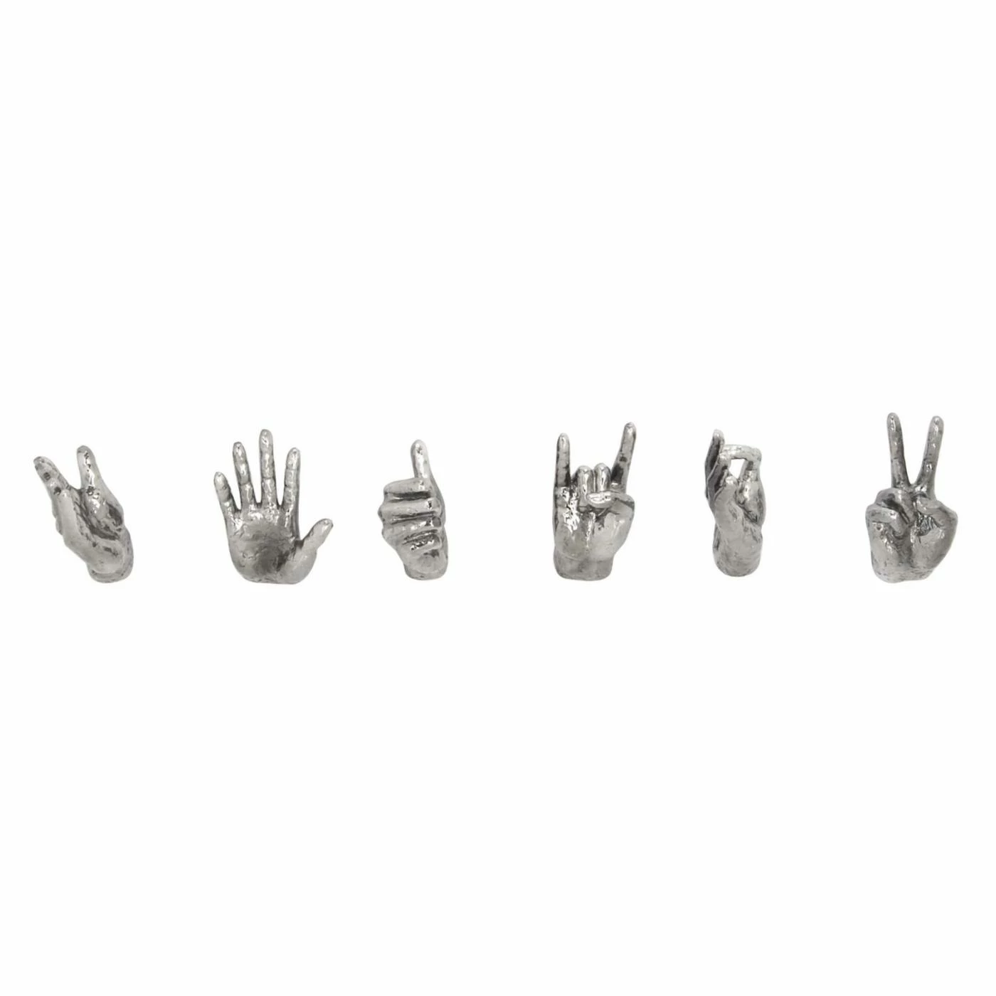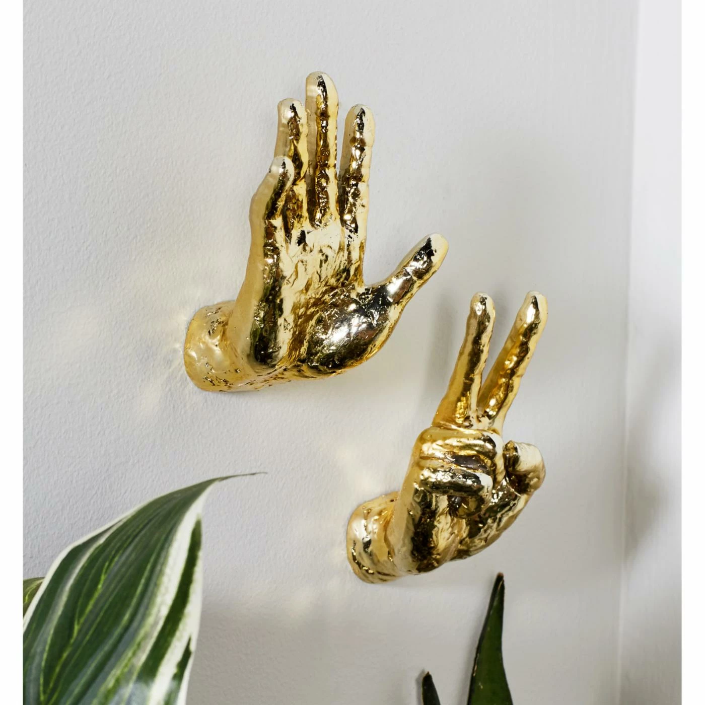 Give your space a contemporary vibe with the DecMode Resin Hand Wall Decor – Set of 6, which features six different hand signals. The variety will add loads of visual appeal to your wall and family and guests interpret each one, and the glossy metallic finish will add a shine to the room.