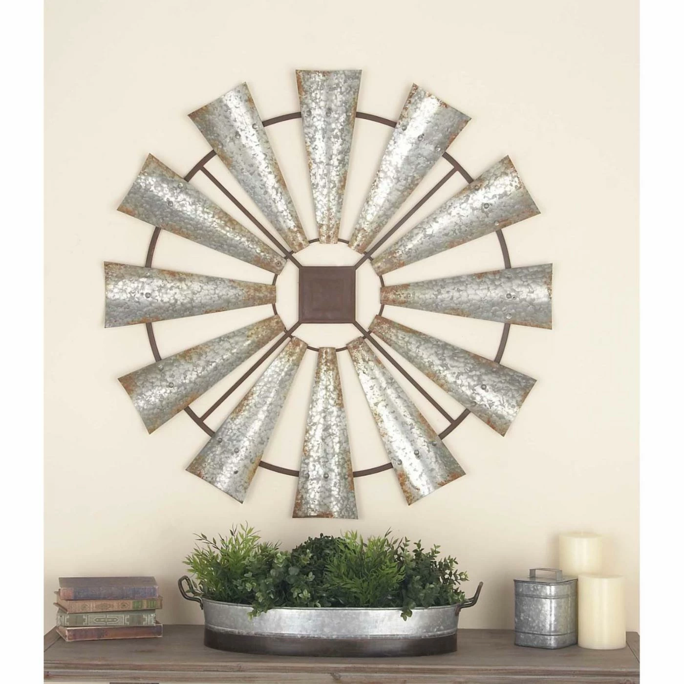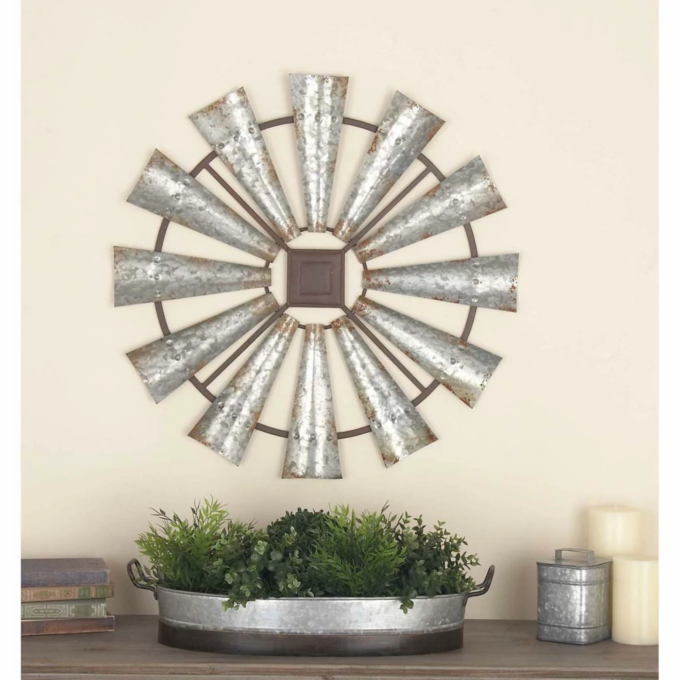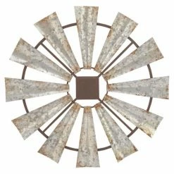 Spice up your farmhouse or country dΓ©cor with the DecMode Round Metal Wall Sculpture. Patterned after the blades on windmills, the sculpture is crafted out of iron that has been carefully distressed for an authentic antique look. The sculpture comes in your choice of available sizes ready to hang.