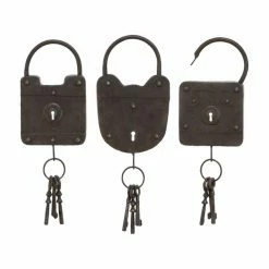 The DecMode Rustic Black Decorative Metal Padlocks and Keysets Wall Decor – Set of 3 completes your industrial or vintage-inspired home by featuring iron construction and antique finish. Each of the oversized and functioning locks includes its own set of keys for a finished look. They can be displayed open, closed, together, or separately for a tailored look you can change any time.