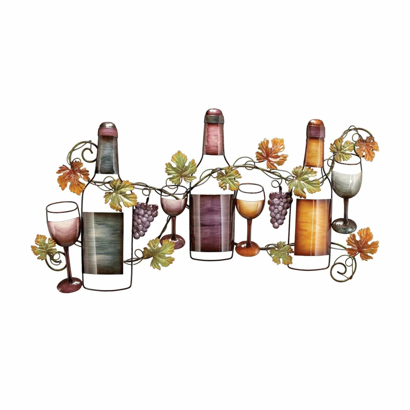 Brighten up your home with the cheerful styling of the DecMode Traditional Multicolored Metal Wine and Grapevine Wall Decor. The iron construction boasts sculpted leaves and meandering vines which add dimension to your walls. Rich hues and a glossy finish add an upbeat vibe that’ll fit right in with a variety of decors. It arrives ready to hang to make installation quick and easy.