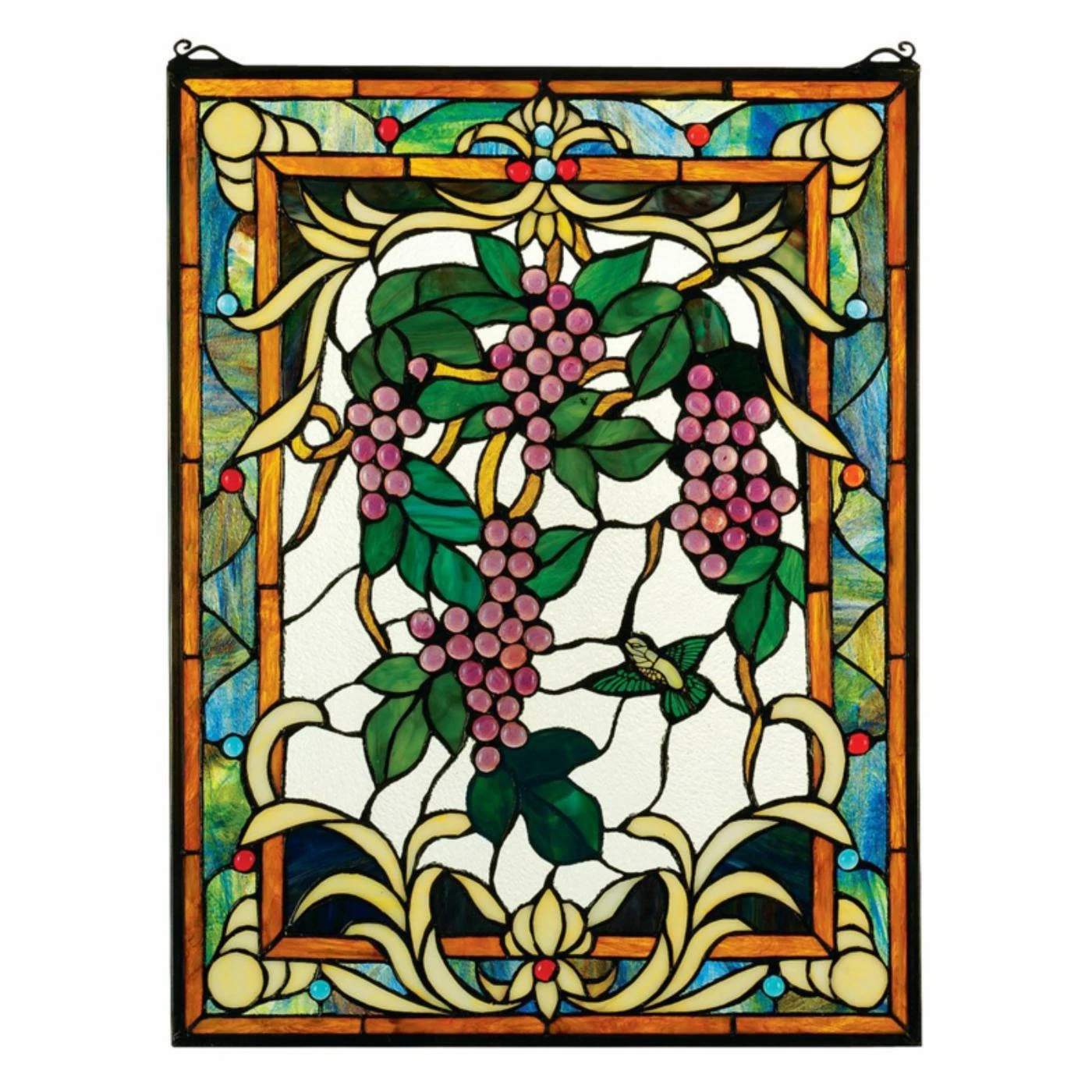 Update your space with the Design Toscano The Grape Vineyard Stained Glass Window. This stained glass window features a Tiffany style design complemented by grape cluster accents. Hand-crafted by skilled glass artisans, this window will make a stunning focal point for any room. The multiple shades enhance its eye-catching appeal.