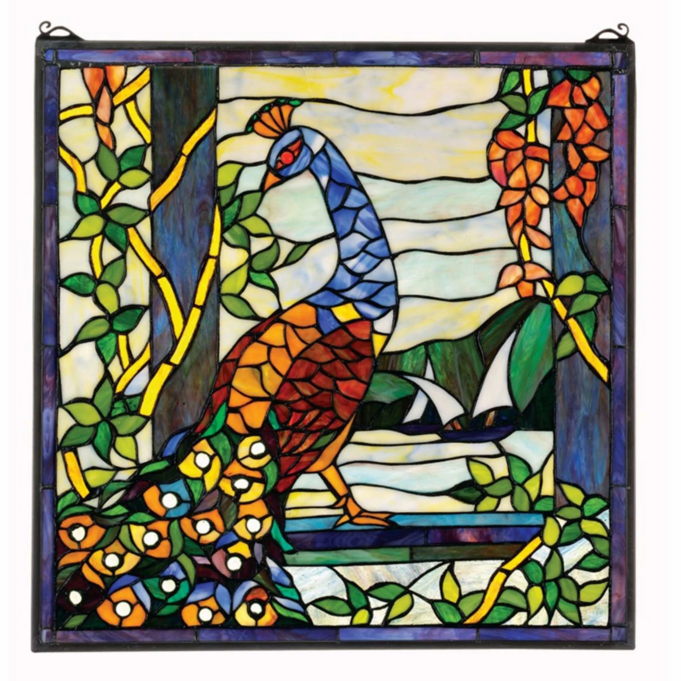 With its dazzling shades, the Design Toscano The Peacocks Garden Stained Glass Window is sure to elevate your space. This stained glass window is a replica of a Tiffany classic. Each glass piece has been hand cut and placed to a beautiful effect. Crafted from skilled glass artisans, this stained glass window makes a stunning gift or decorative focal point for your home.