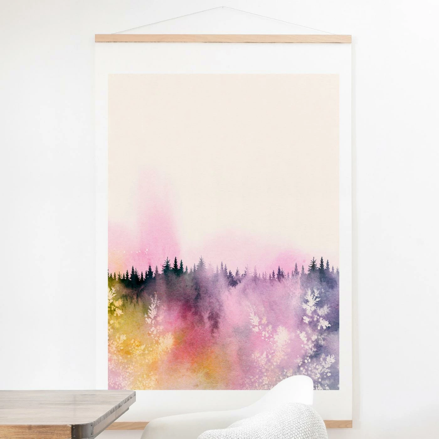 Make your home more colorful and inspiring by decorating your home with the Deny Designs Dreaming Of You Wall Scroll. This abstract landscape is printed and mounted on a natural wood base, making it ready to hang using the included hardware.