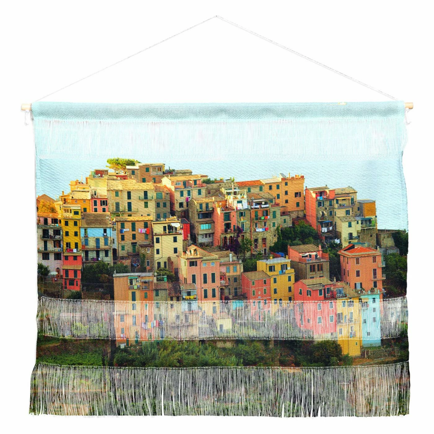 Fall for the colorful homes found in the Deny Designs Happee Monkee Cinqueterre Wall Hanging. Happee Monkee’s original full-color photograph is printed directly onto woven polyester, giving this wall hanging its vivid color and sweet style. This fiber art wall hanging is offered in a choice of available sizes.