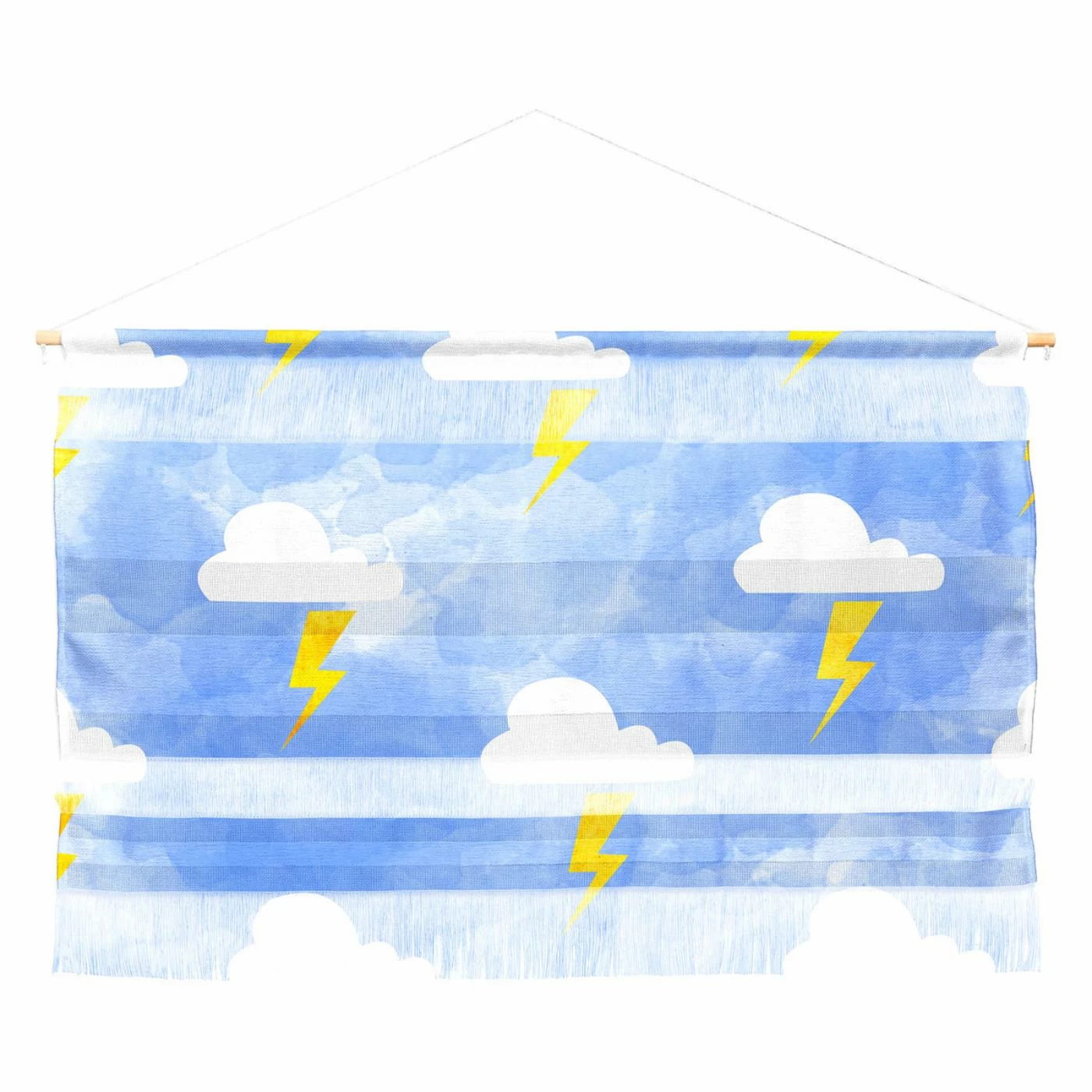Bolts of lightening make the Deny Designs Hello Sayang Thunderstorm Wall Hanging a great idea. For wall art that suits your mood, this woven polyester piece is rich with different textures that lend a natural look and feel. The artwork print is bold, and a dowel hanger makes it easy to style this piece on any wall. It comes in your choice of available size.