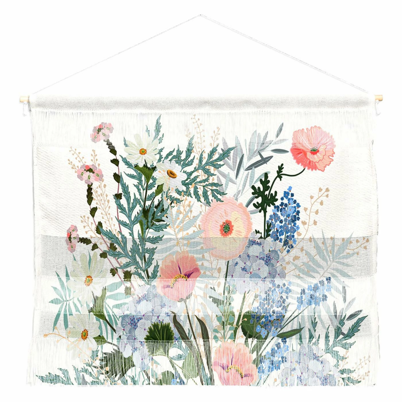 A garden of flowers bloom wherever you plant the Deny Designs Iveta Abolina Camille Wall Hanging. For wall art that fits your feminine aesthetic, this woven polyester piece is graced with fringe and varying textures that give it a natural look. The floral artwork print is colorful, and a dowel hanger makes it easy to style this piece on any wall. It comes in your choice of available size.
