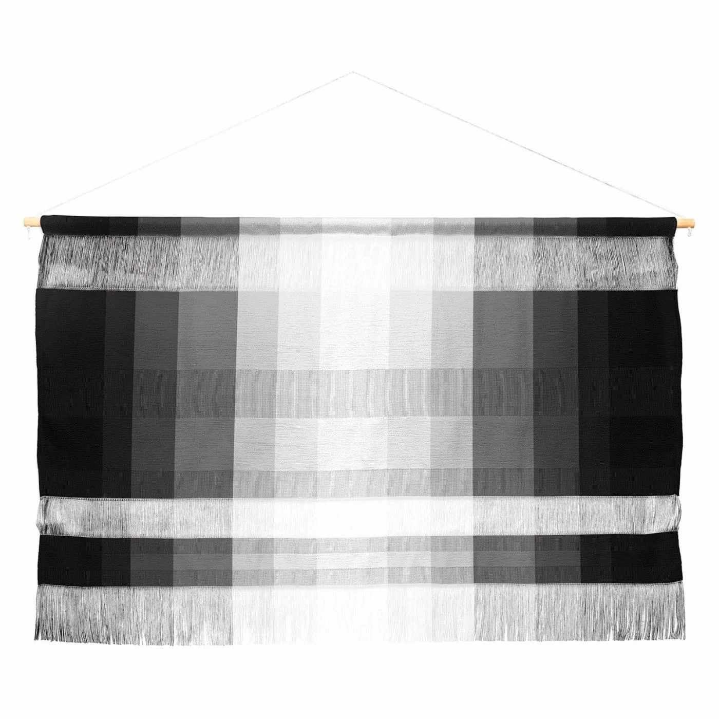 Bold stripes go from black to gray and back again on the Deny Designs Lisa Argyropoulos Gray Matter Wall Hanging. This handsome wall hanging is enriched by textures, fringe details, and an easy wood dowel hanging system. This fiber art wall hanging is offered in a choice of available sizes.