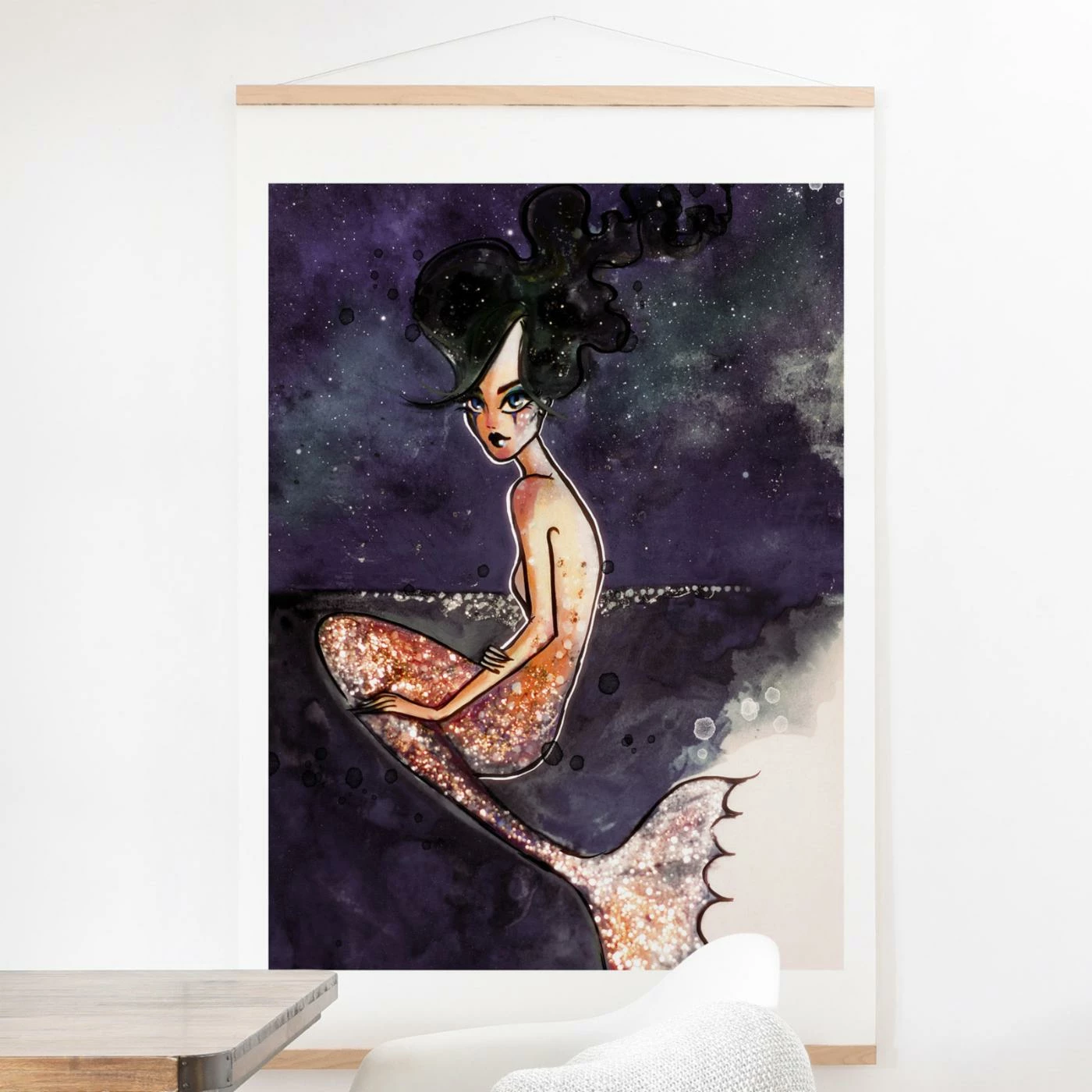 Bring a whimsical look to your dΓ©cor by featuring the Deny Designs Mermaid And Stars Wall Scroll on your wall. This print on acid-free fiber paper is done using fade-resistant archival inks.