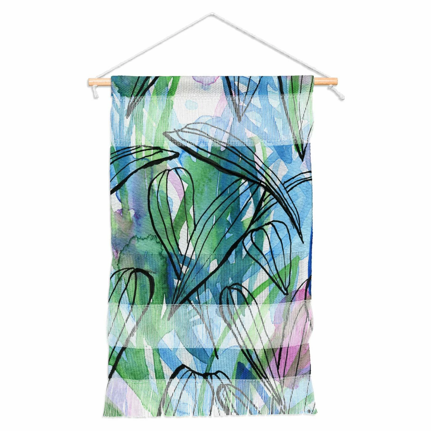 Let your eyes get lost in the Deny Designs Summer Blue Leaves Wall Hangingโs abstract blue and green hues. Artfully woven from durable polyester yarns, this wall hanging features subtle textures. It is hung simply from a minimalistic wooden dowel.
