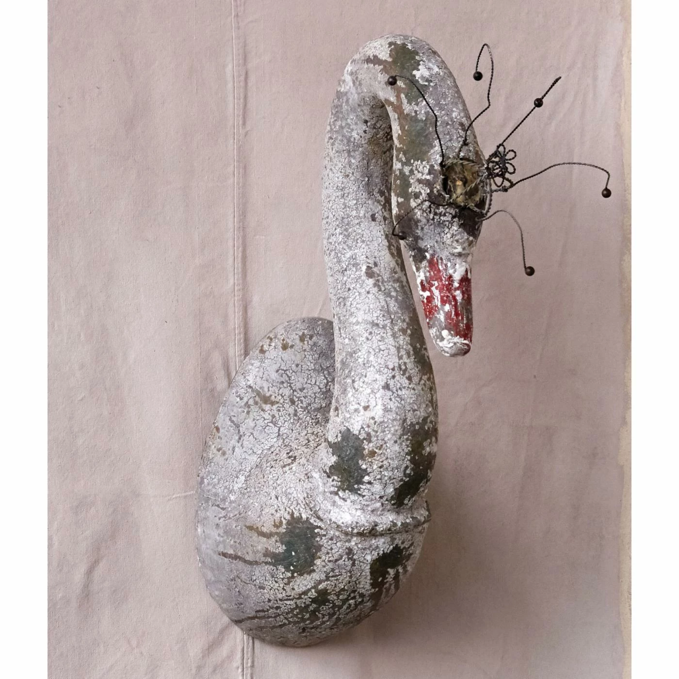 The heavily distressed finish of the 3R Studios Magnesia Swan Head Wall Accent brings an antique vibe home. This faux taxidermy swan sculpture features a magnesium and metal construction ensuring lasting use through the years.