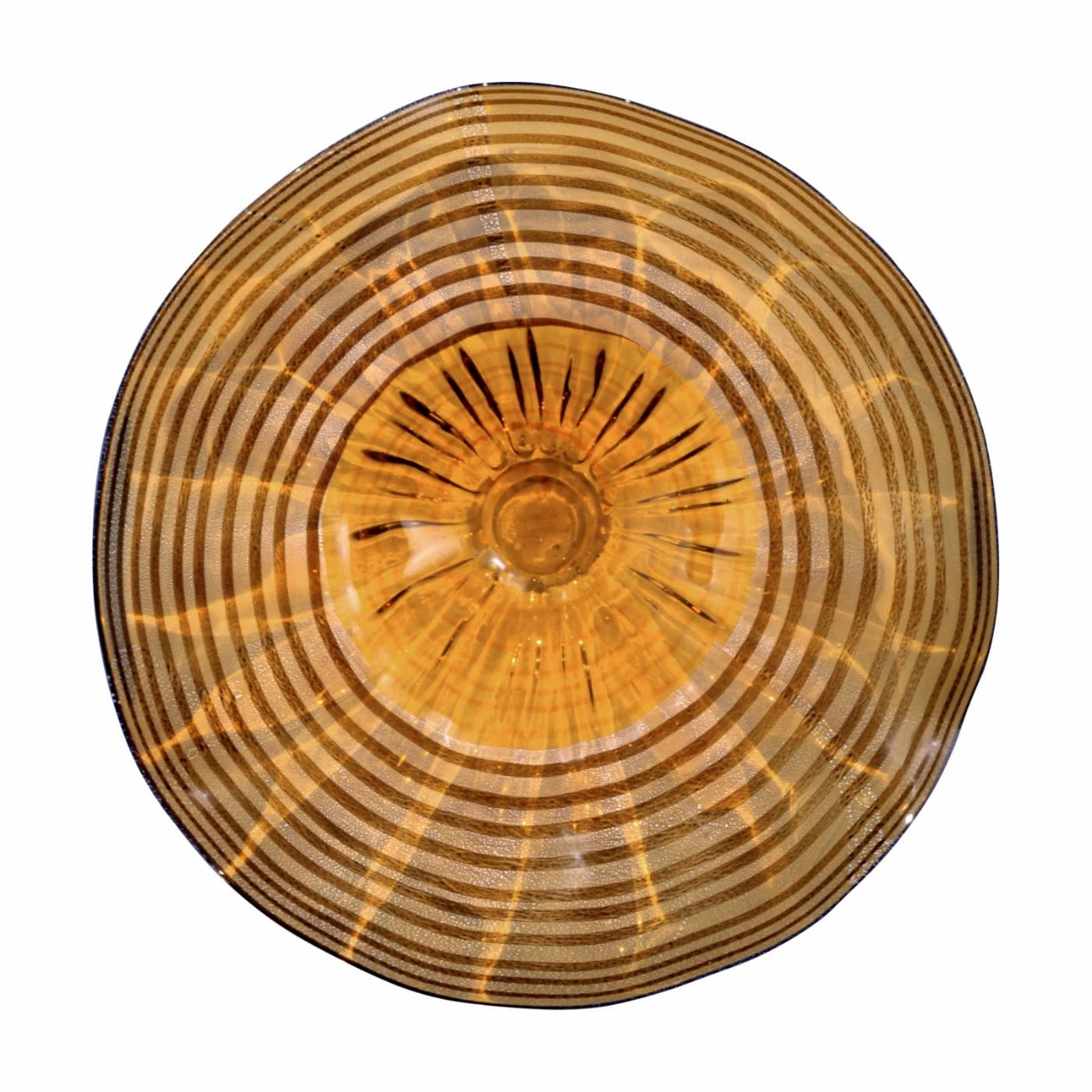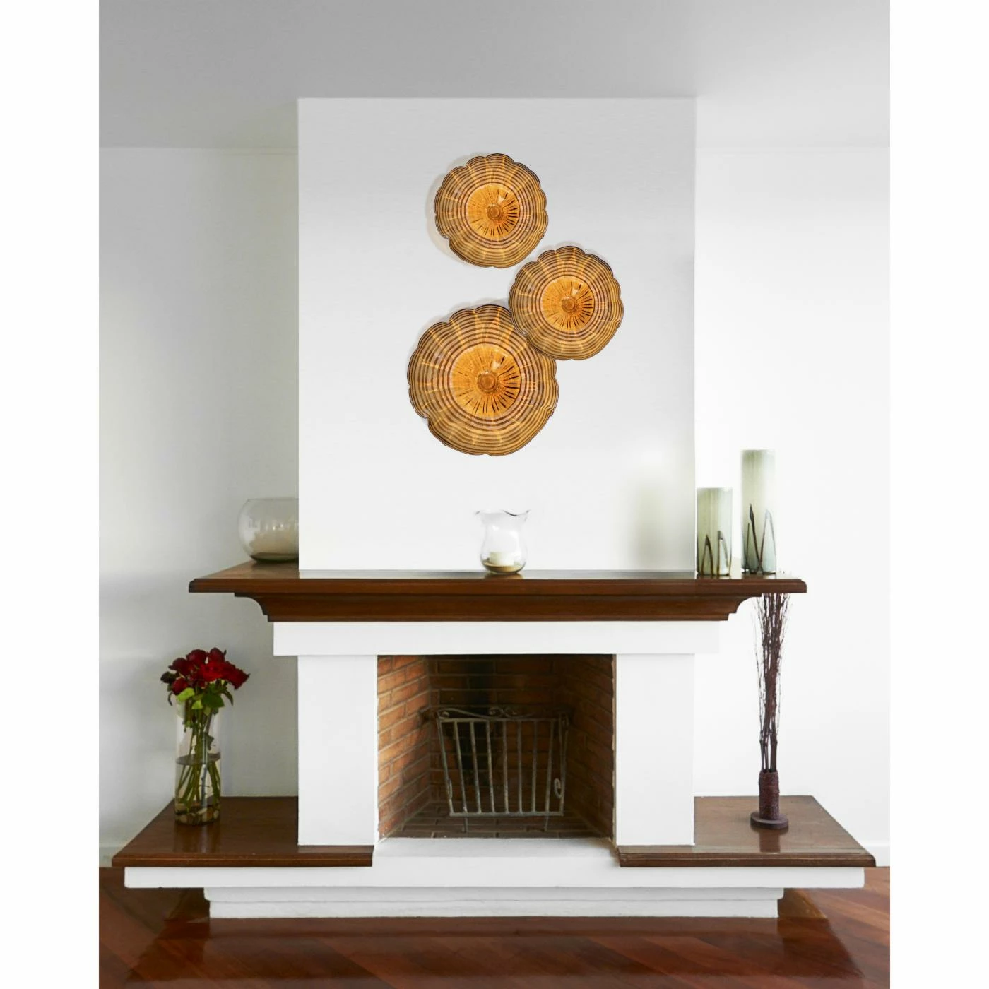 Place the Amber Handover Wall Sculpture above your mantel, bed frame, or next to an accent mirror for a gorgeous complement with an attractive color. The sculpture had an oblong round shape made from glass. A golden orange top accents the piece, adorned with dark concentric rings.