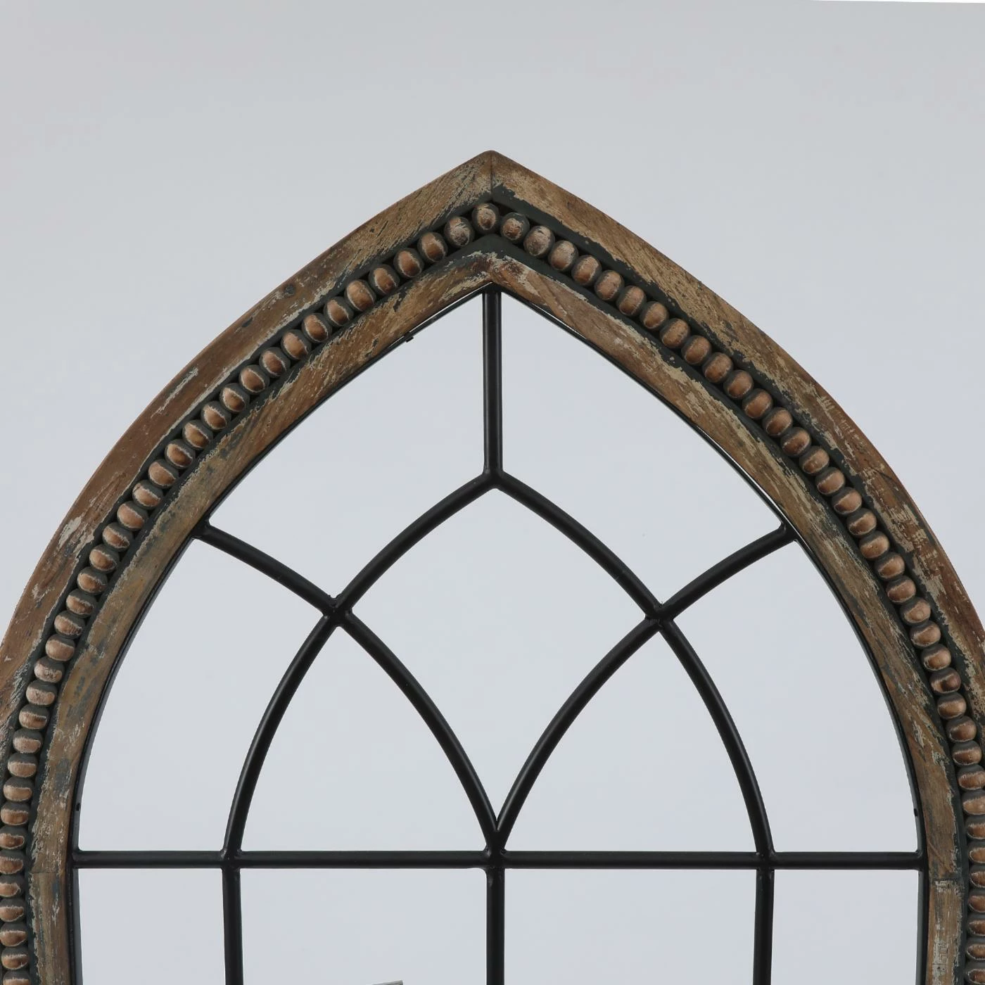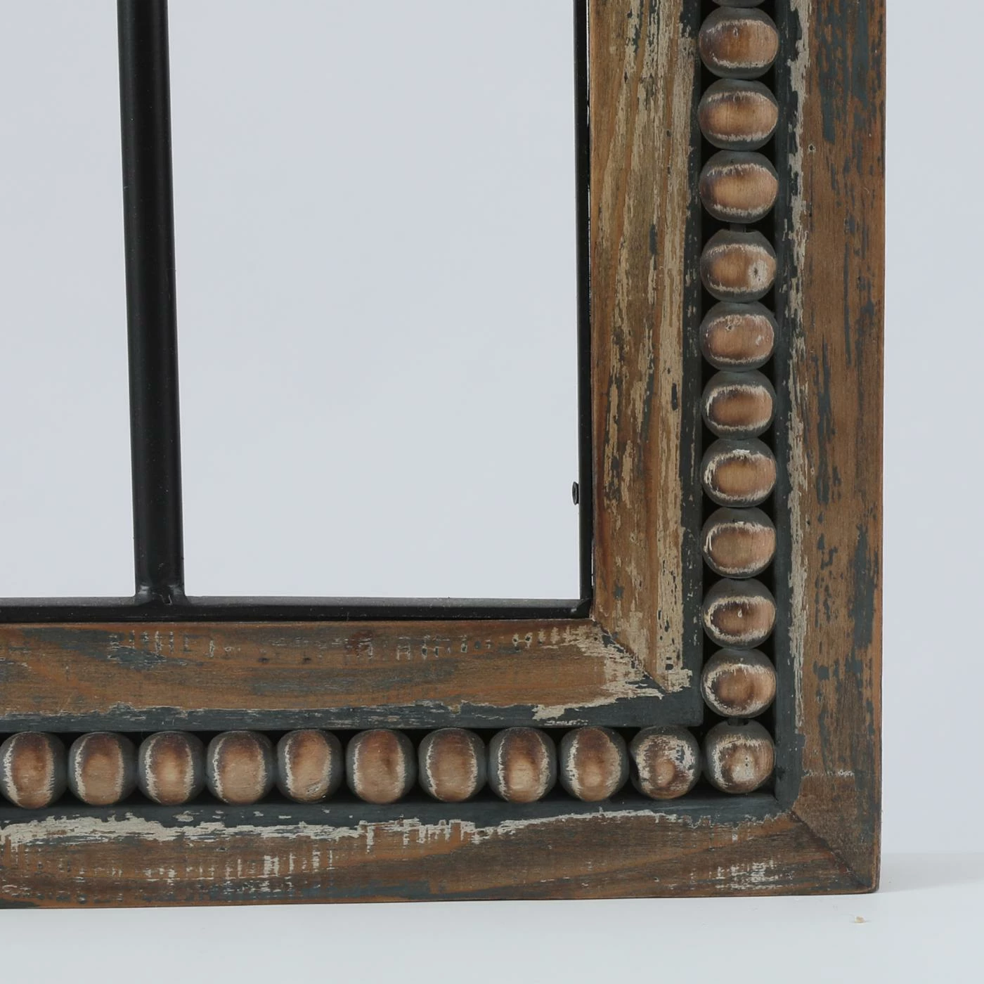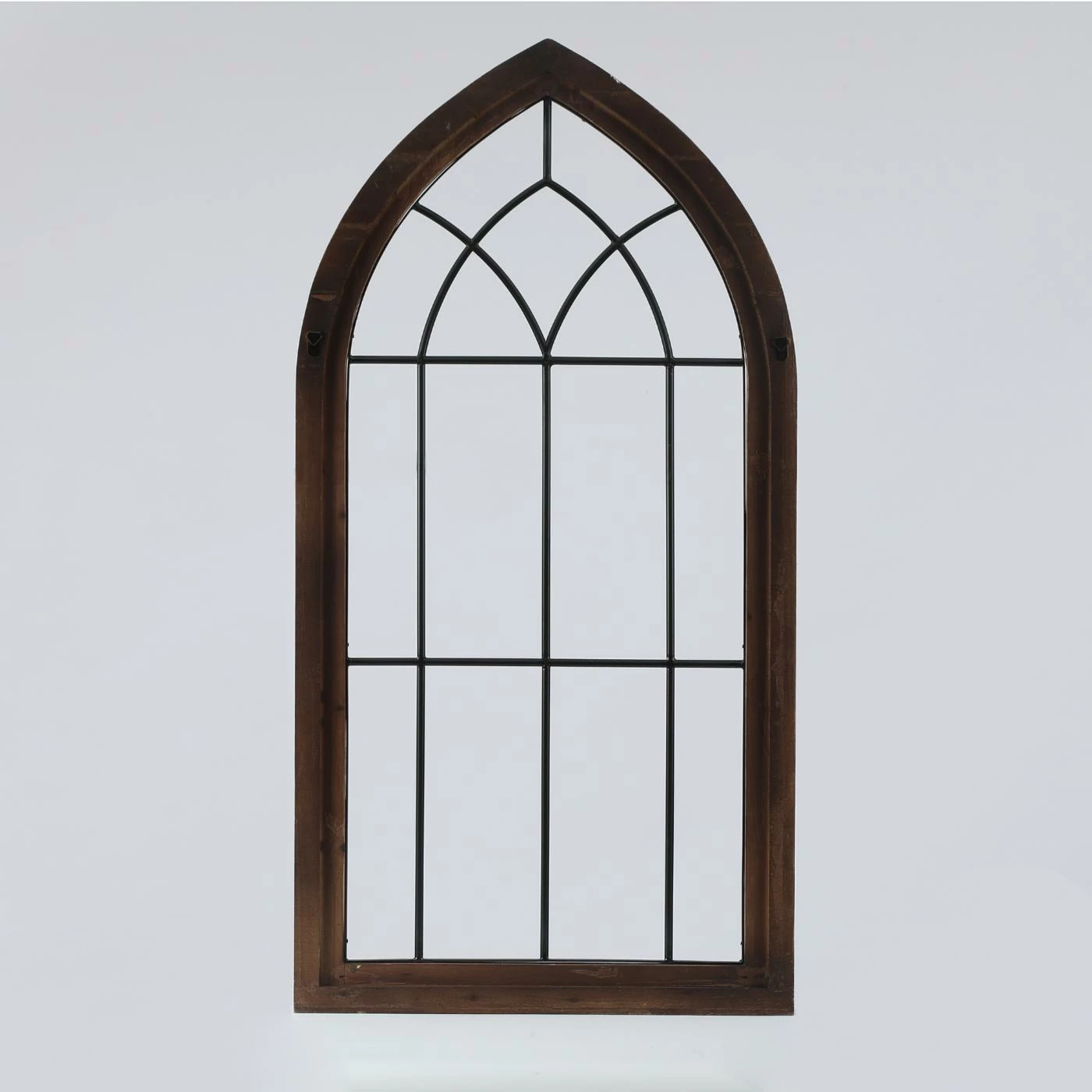 Bring a touch of sophisication to your home with this LuxenHome Distressed Wood and Metal Cathedral Wall Decor. This lovely cathedral shaped wooden wall decor features an arched window design made from fir wood. The wood wall window frames a stunning, contrasting black iron inside. The wood frame has decorative wood beads lining the entire frame. The cathedral wood window is perfect for hanging anywhere in your home.