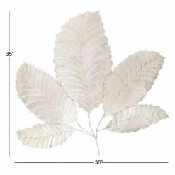 The DecMode 36W x 35H in. Stainless Steel Textured Five Leaf Wall Sculpture features five fanned-out leaves made of stainless steel with a textured finish. This chic wall sculpture is enhanced with a silver look to add brilliance and sleek beauty to any room of your modern home.