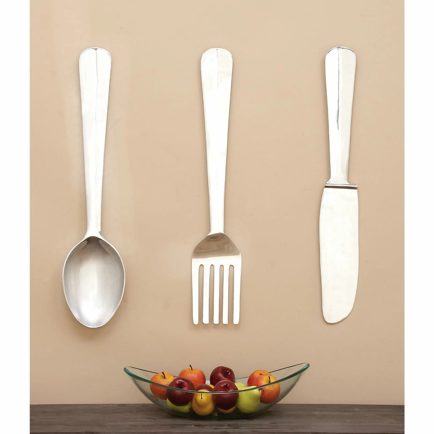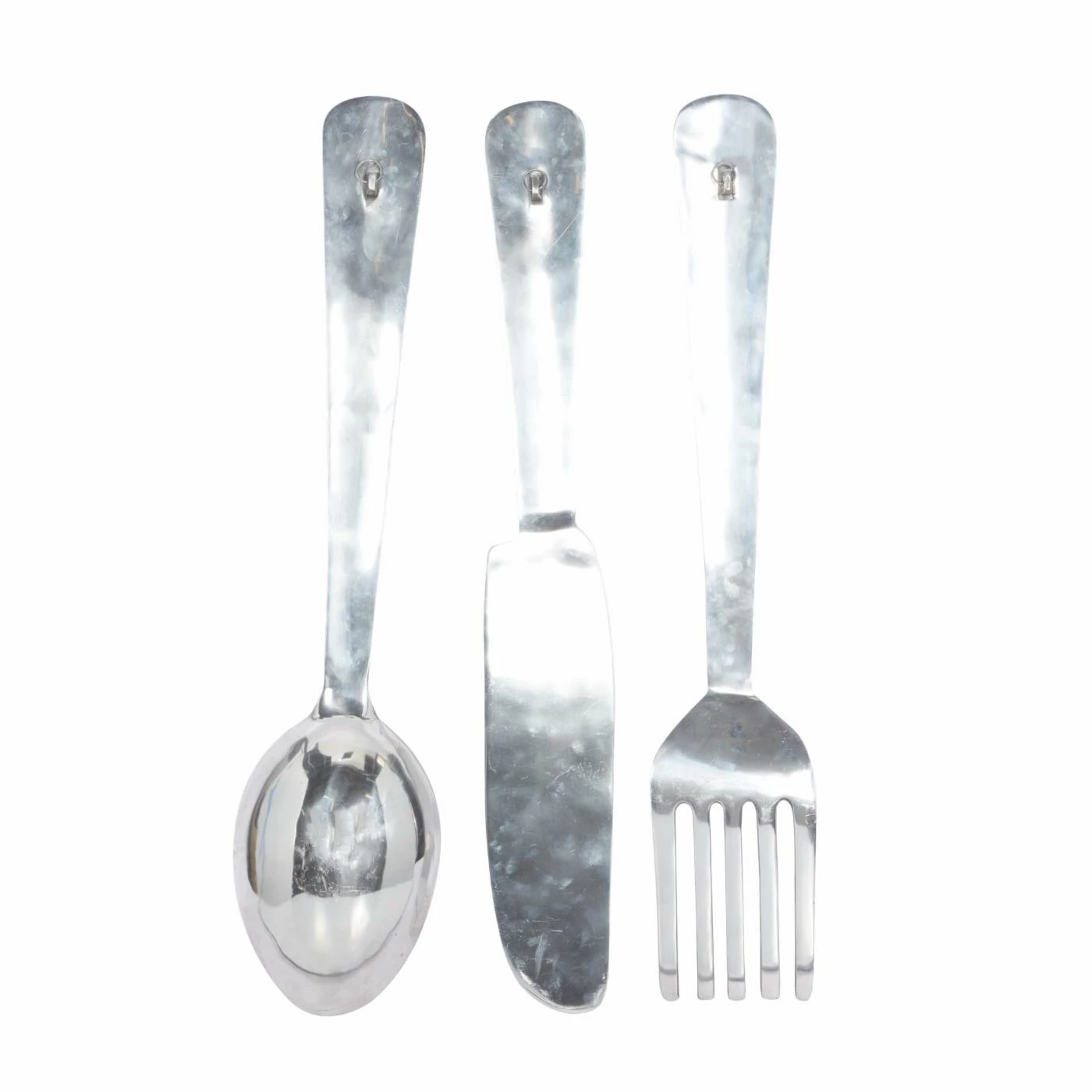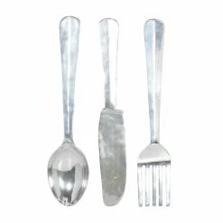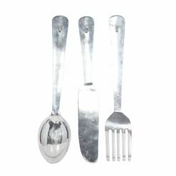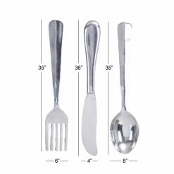 Add a humorous accessory to your dining space with the DecMode Aluminum Utensil Wall Sculpture – Set of 3, featured in a knife, fork, and spoon silhouette. These whimsical wall sculptures are made of aluminum, and their silver finish lends them a contemporary touch and a bright shimmer.