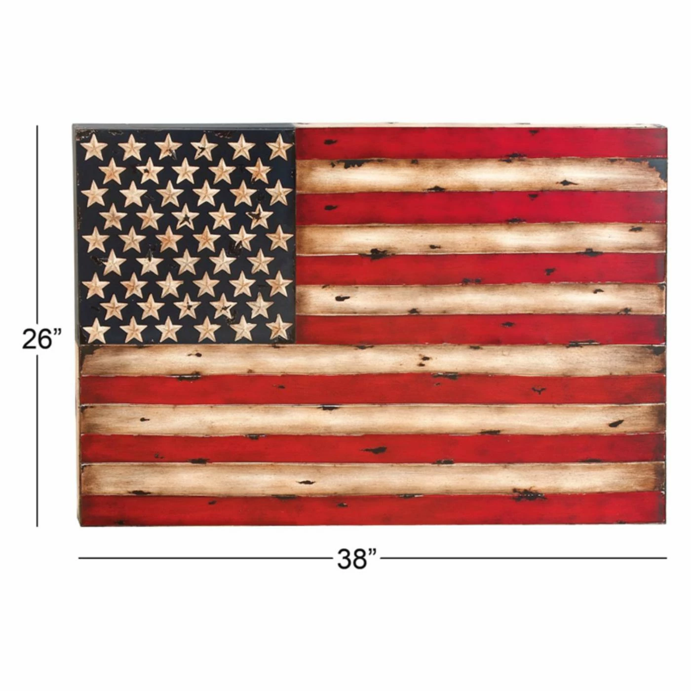 Add a little patriotic flair to your decor with the DecMode American Flag Wall Sculpture. This solid iron depiction of Old Glory comes painted in red, white, and blue, with light distressing for a timeworn appeal.