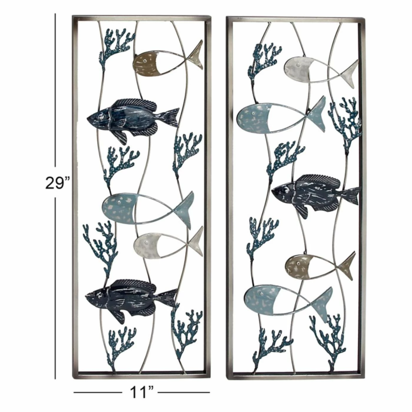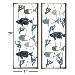 The DecMode Fishes and Seaweed Wall Sculpture – Set of 2 features a combination of abstract and realistic fish designs coupled with an array of seaweed and coral shapes. These oceanic wall sculptures are made of durable iron and boast sleek silver finishes blended with colors of soft blue and rich aquamarine.