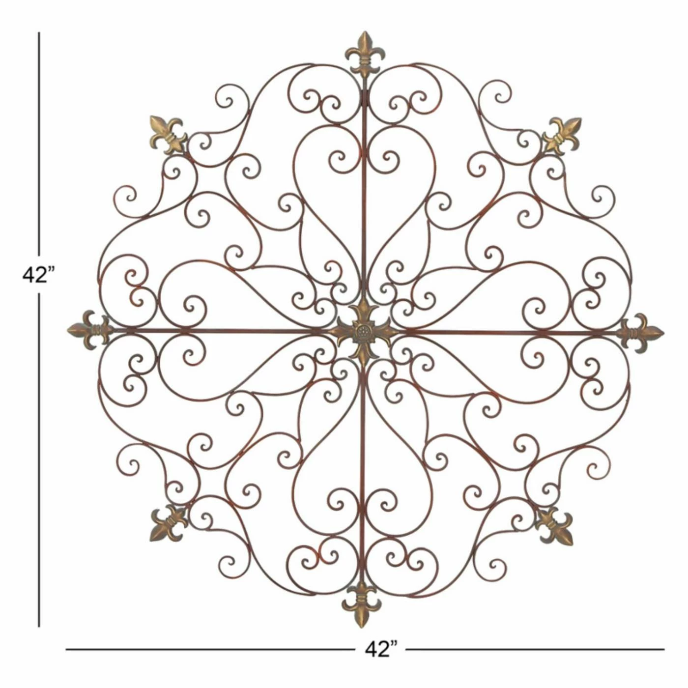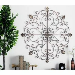 The DecMode Floral Design Wall Sculpture is filled with slender scrolled designs and fleur-de-lis accents for a traditional European look. Hang this stylish bronze-finished wall sculpture over your fireplace or in the dining room to bring your home some old-world flair.