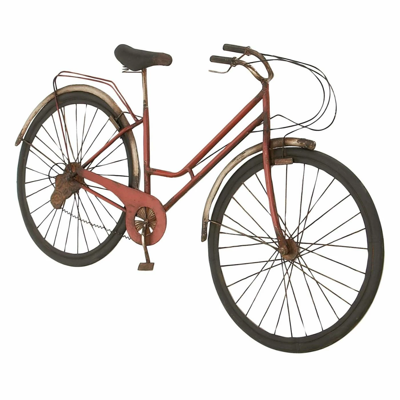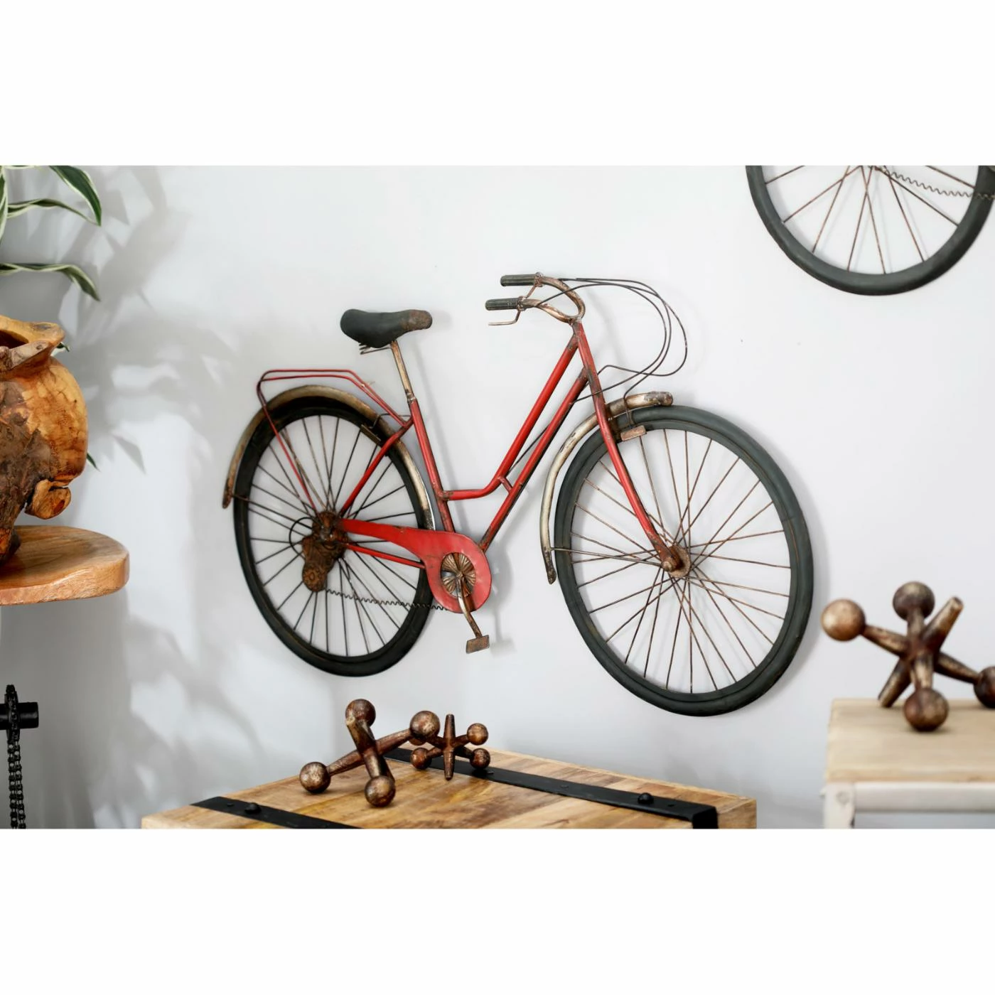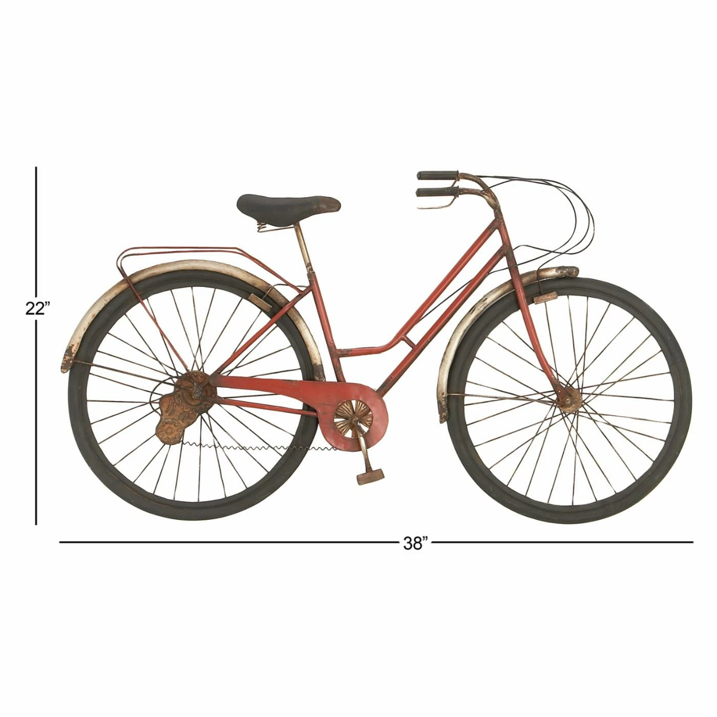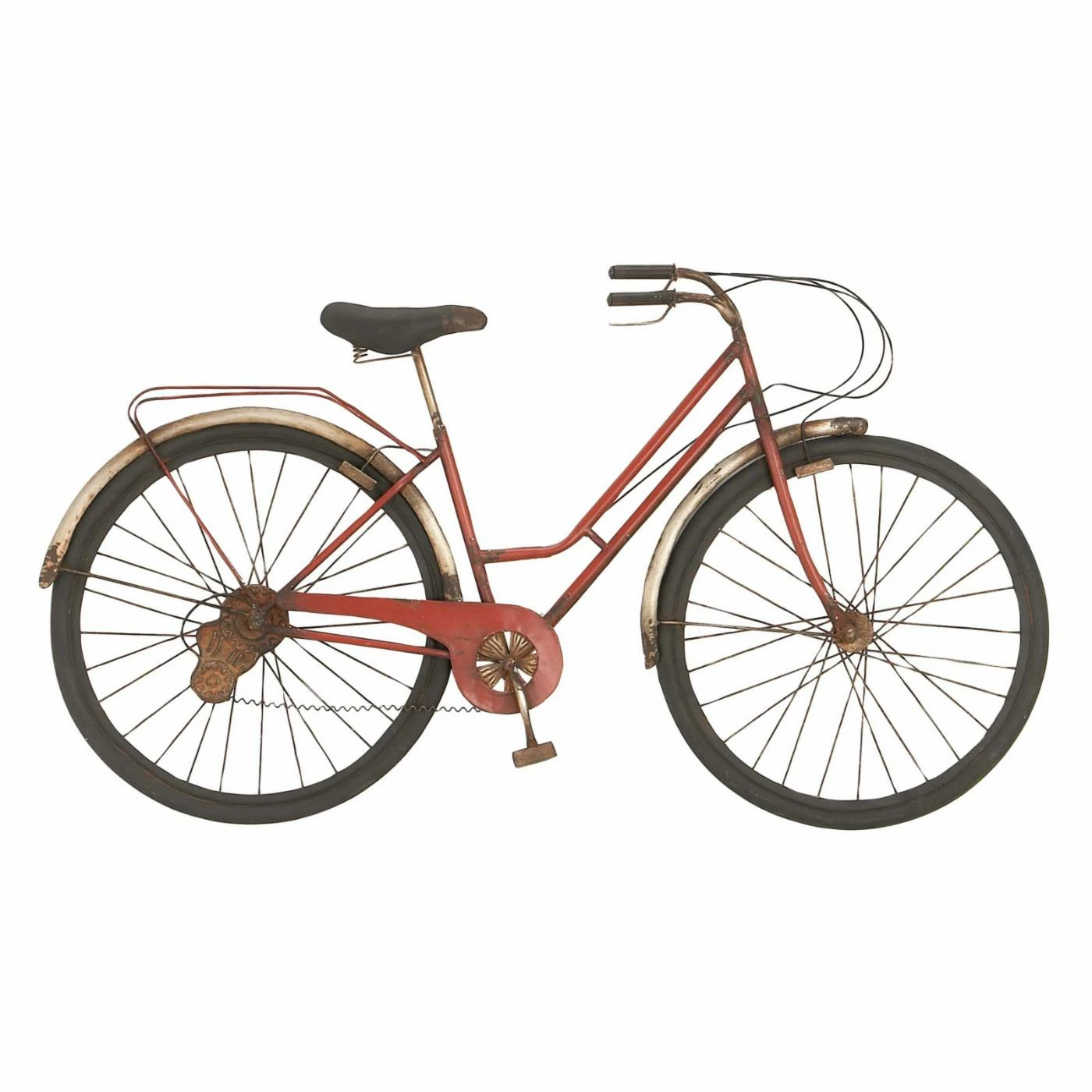 The DecMode Iron Bicycle Wall Decor is a Japanese-inspired piece that’s designed with a life-like look, including the handles, seat, wheels, and chain. It has a red, black, and white finish with distressed effects that add character to the look. It’s a great piece to hang in your game room, den, or work space