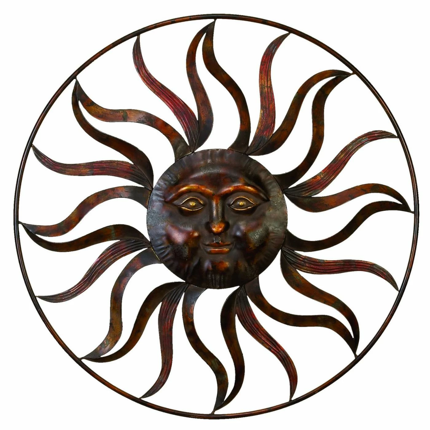 Make every day a sunny one with the DecMode Iron Celestial Sun Wall Sculpture, a durable iron sculpture with a cheerful smiling face. A flamed bronze finish gives the piece rich warm color, and the sculpture has hangers built into its design for your convenience.