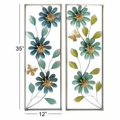 Create a whimsical springtime look with the DecMode Ribbed Pattern Wall Sculpture – Set of 2, accented with gold butterflies and slender stems adorned with leaves and blooming flowers with ribbed petals. These chic pieces of wall dΓ©cor are enlivened in bright colors of blue and green that help you infuse a vibrant, organic feel to any room of your modern home.