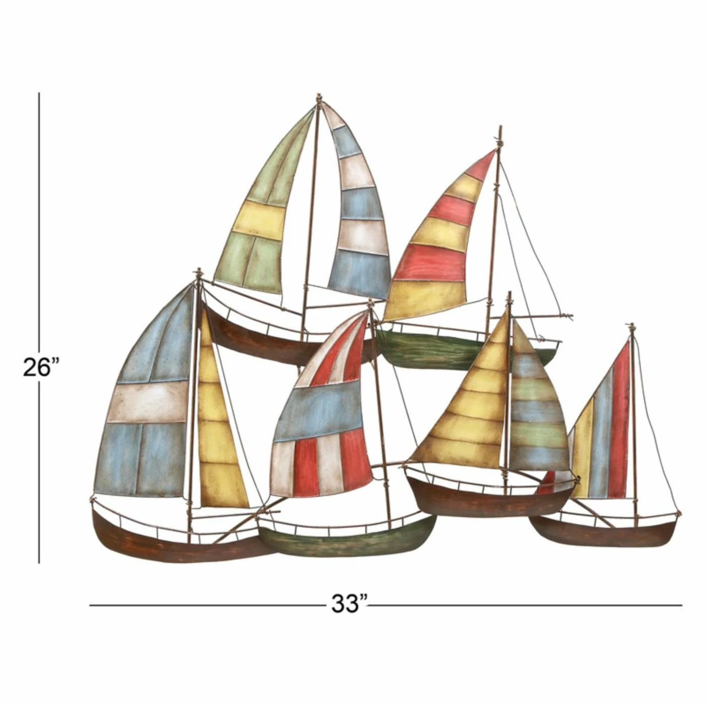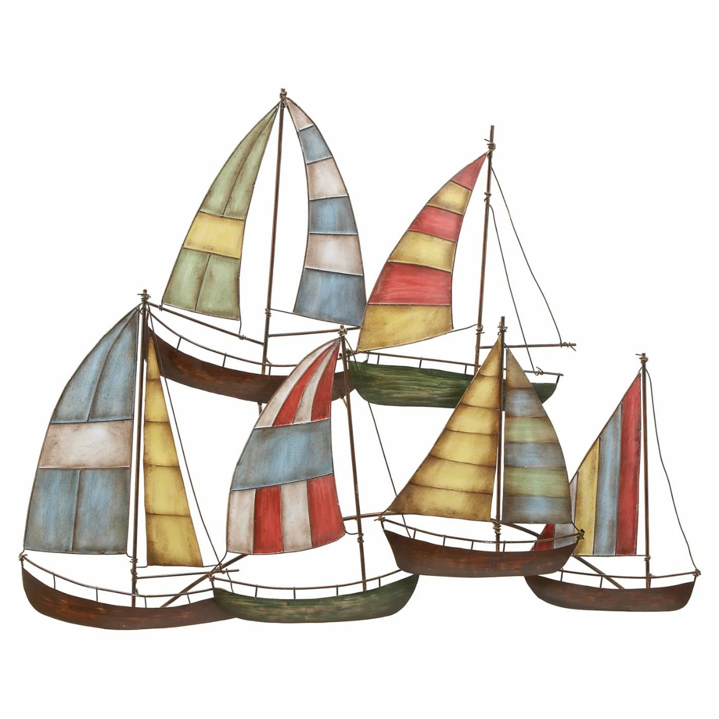 Establish a fun, nautical theme in your home with the DecMode Sailing Boat Wall Sculpture. This solid iron work of art features six boats flaunting beautiful sails striped in shades of blue, white, red, green, and yellow.