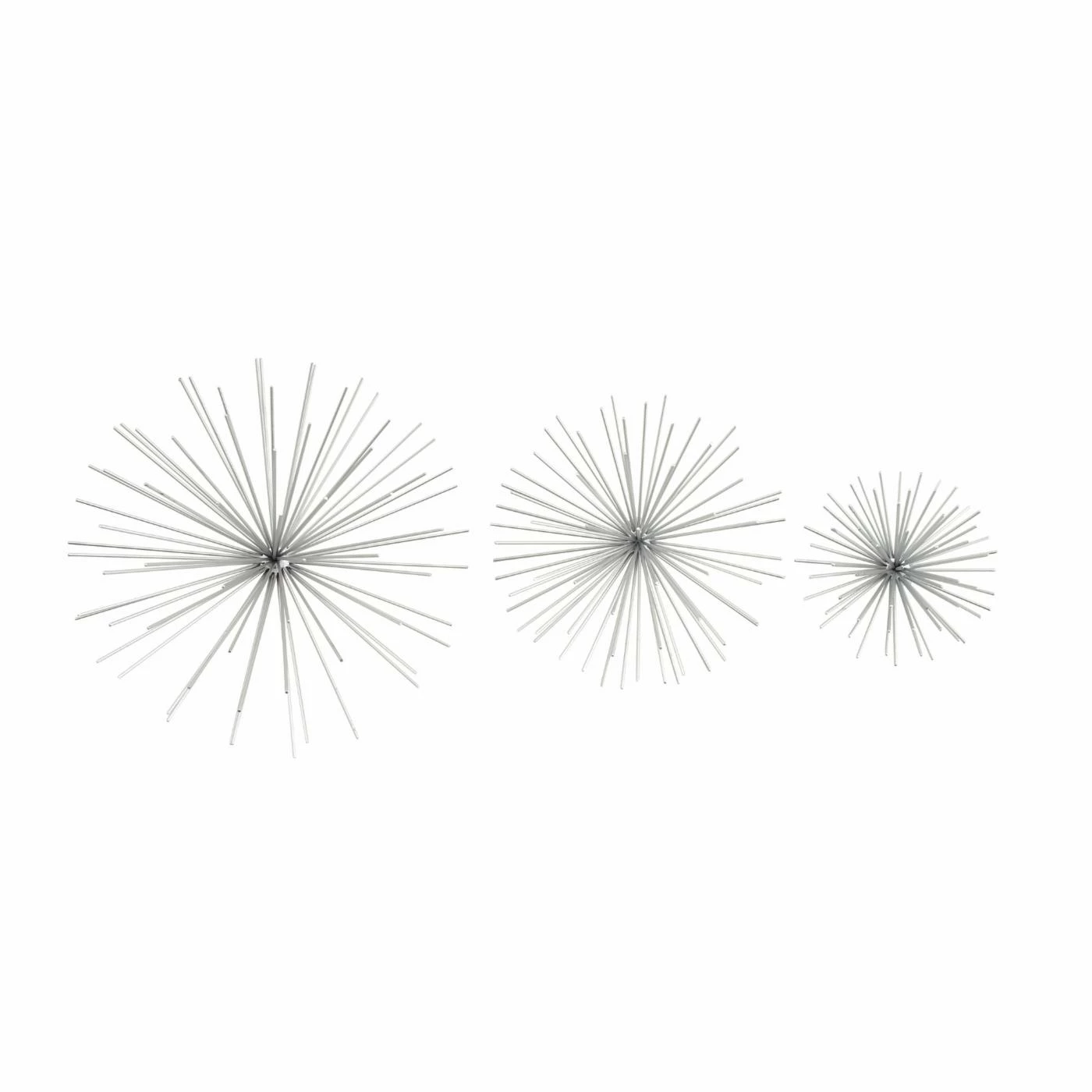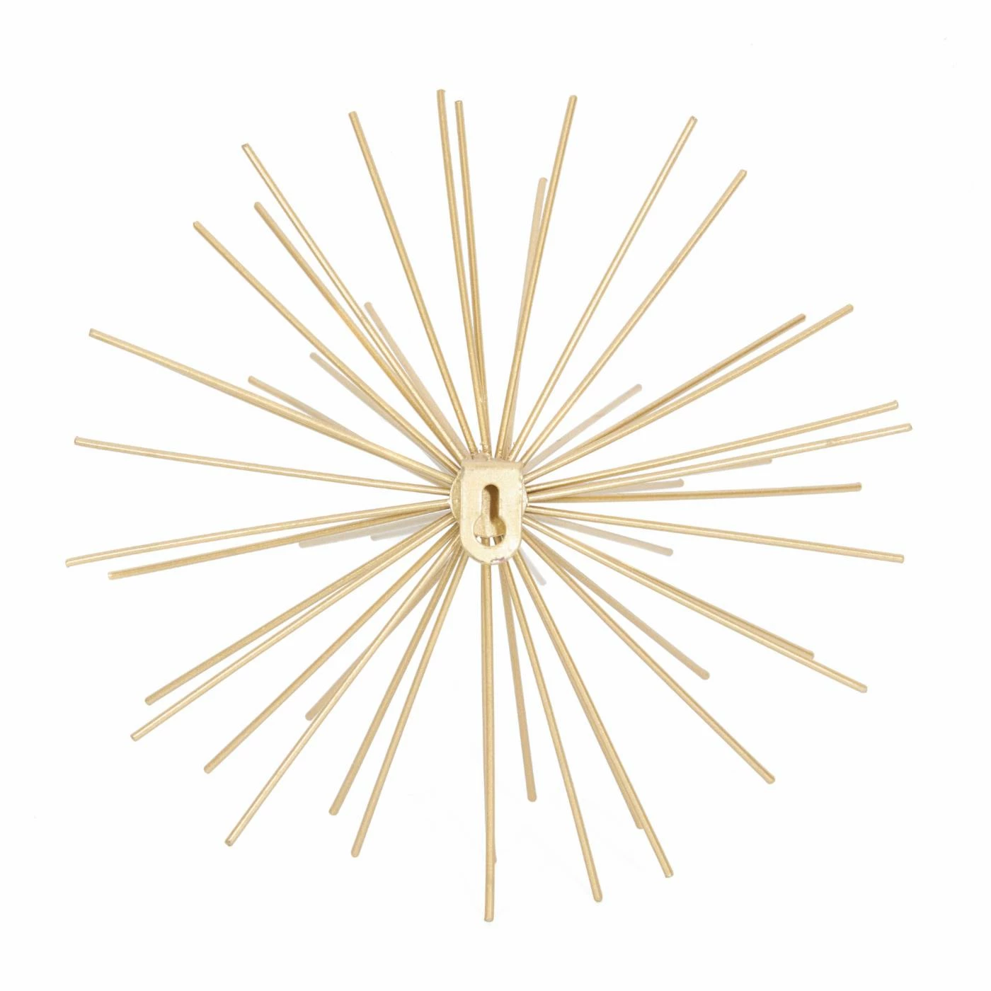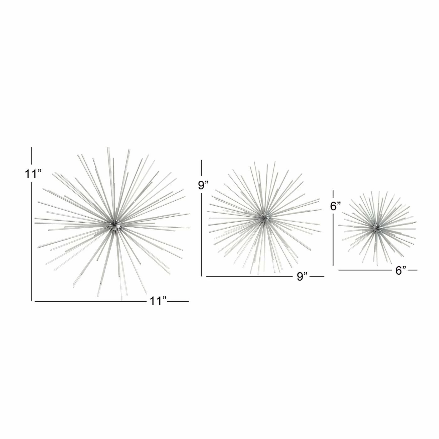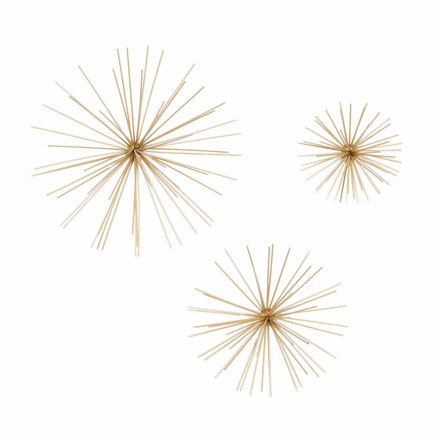Designed to look stars bursting to life on your wall, the decorative accents in the DecMode Starburst Star Wall Sculpture – Set of 3 adds a fun final detail to a modern or industrial living space. Offered in your choice of available metallic finishes, the sculptures are crafted out of tin wire mounted onto central balls. Flat backs make them easy to hang out of the box.