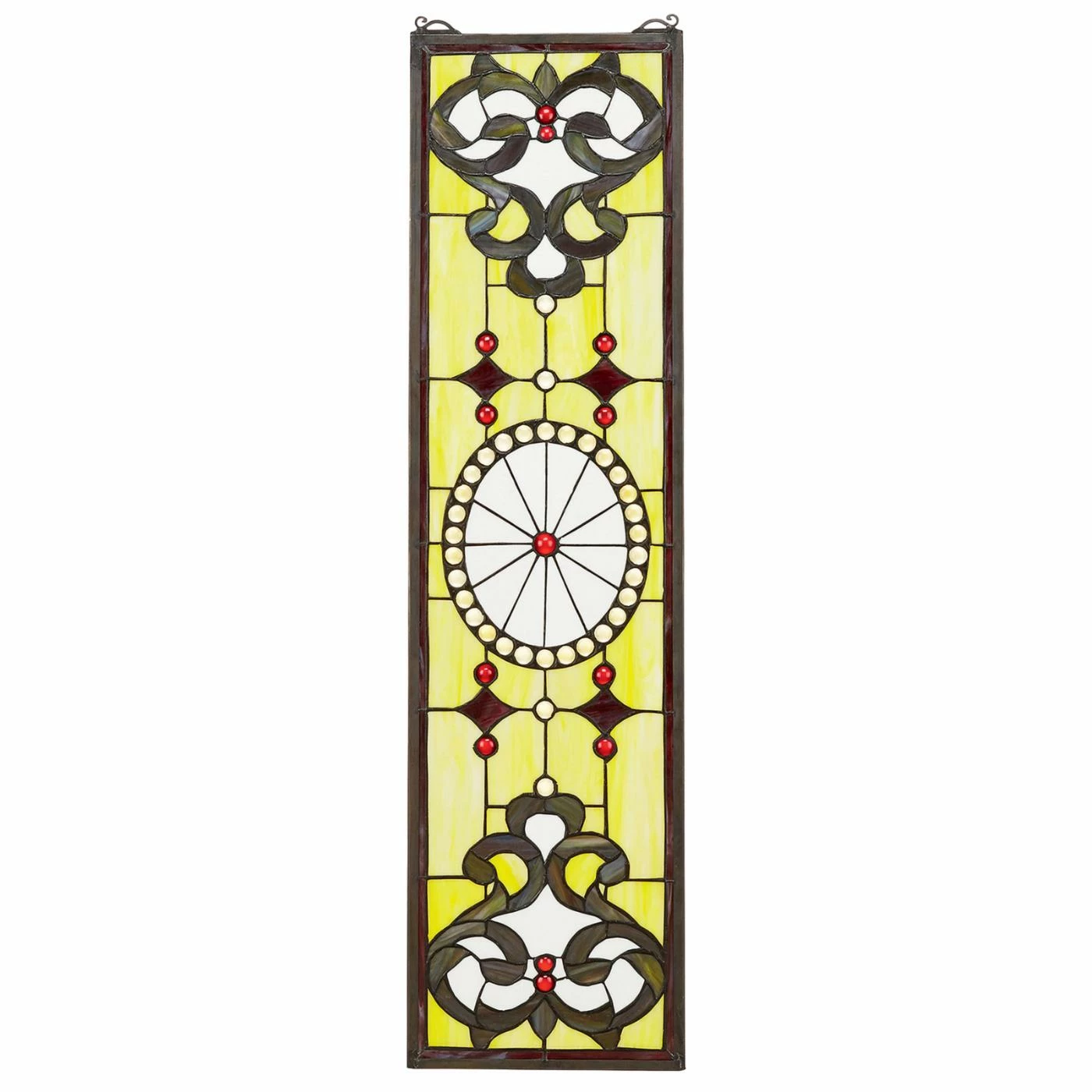 The Design Toscano Belvedere Tiffany-Style Stained Glass Window is sure to lend a vintage look to your setting. This artisan-crafted window features a beautiful design in bright yellow and red hues. Each piece of glass is hand-cut, then secure together with glazier’s lead. The long, rectangular shape adds a unique accent to whichever display space you choose. It includes scroll brackets and chains for hanging.