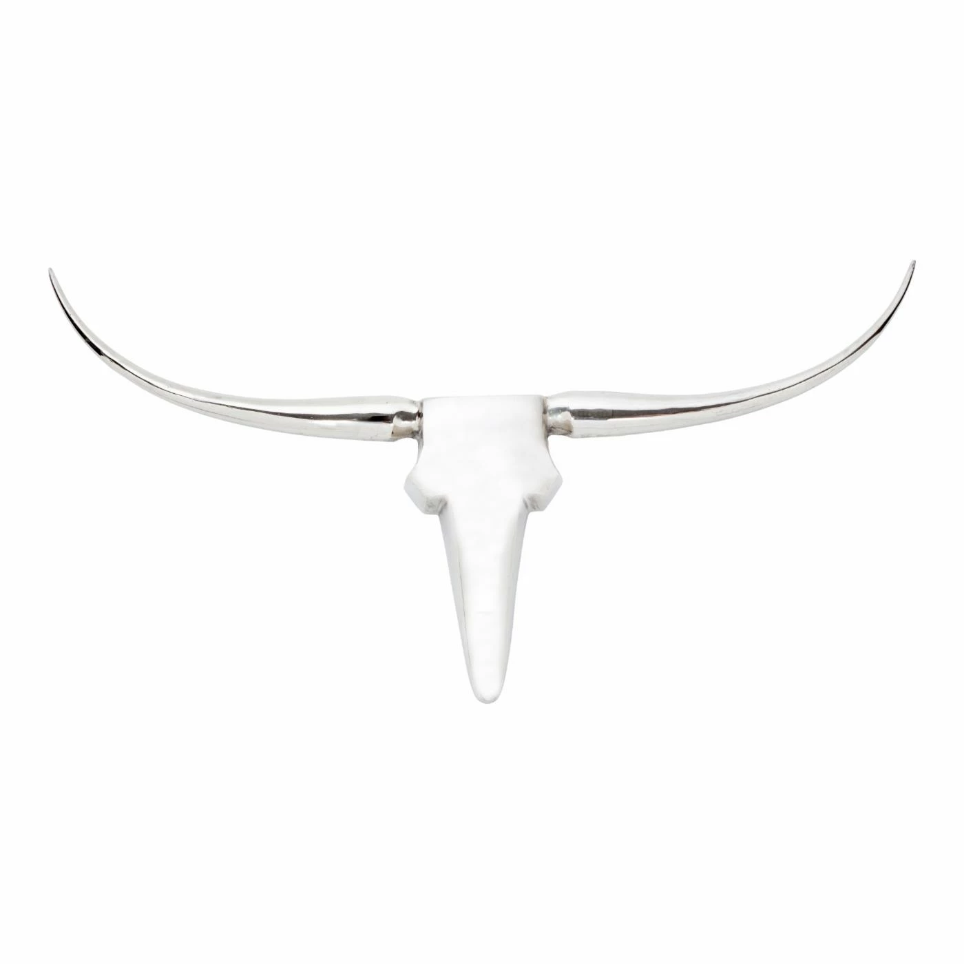 The sleek, long horns on this Moes Home Collection Longhorn Wall Decor create a dramatic statement on any wall. This aluminum wall dΓ©cor comes ready to hang and drenched in the metallic silver.