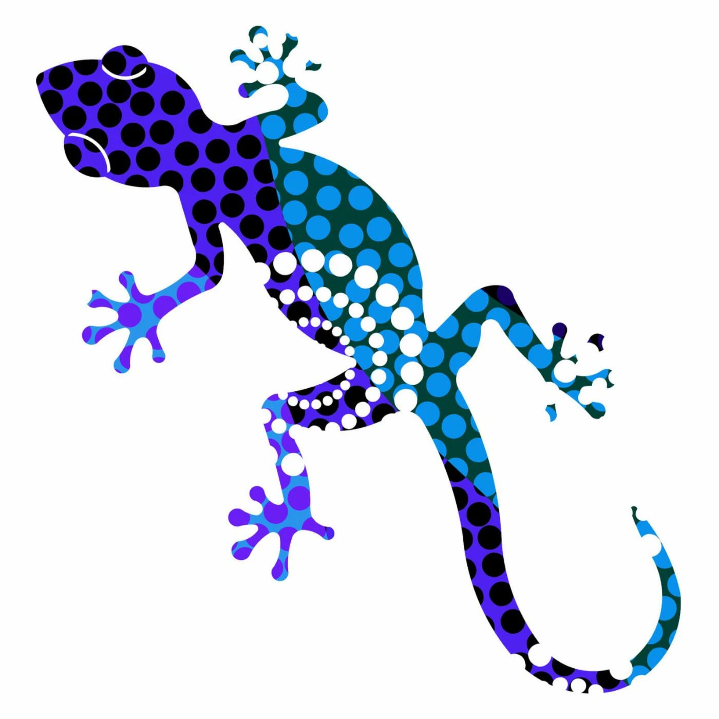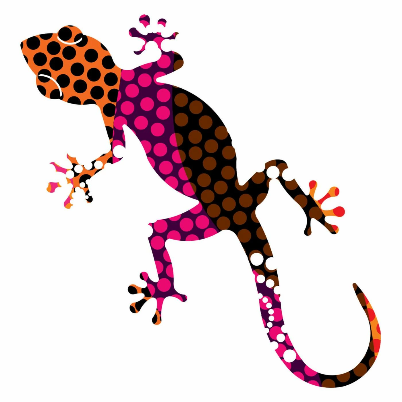 - Design of 3 geckos that come in dahlia green, orange, and purple