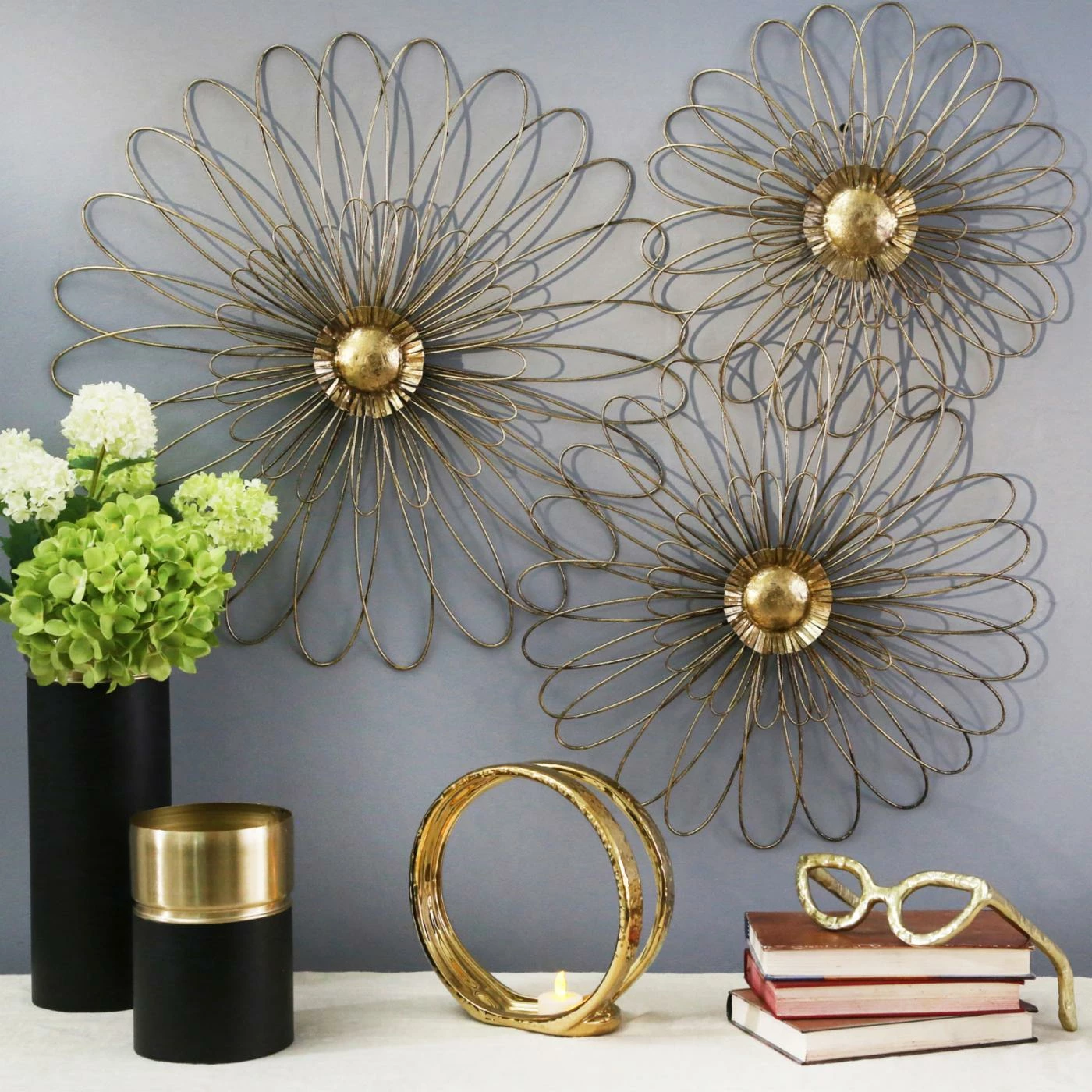 Looping wires joined in the center create a light and lovely design with the Sagebrook Home Flower Wall Sculpture – Gold. Glamorously finished in gold, this open, floral-shaped sculpture is elegantly crafted for a dimensional silhouette.