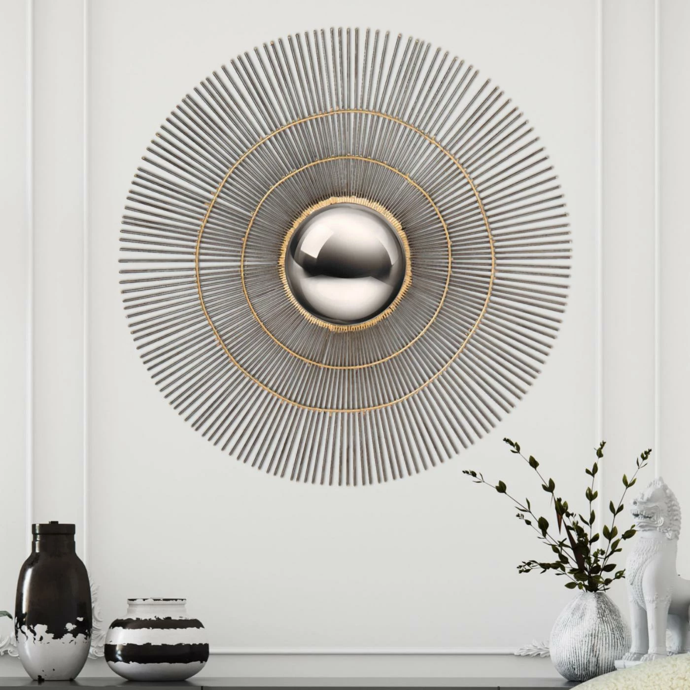 We love wall art that can also be functional, which is why the TOV Furniture Quill Antique Wall Art strikes such a chord. This piece, which comes ready to hang, has a small central mirror surrounded by gray spokes with gold trim. Handmade from iron.