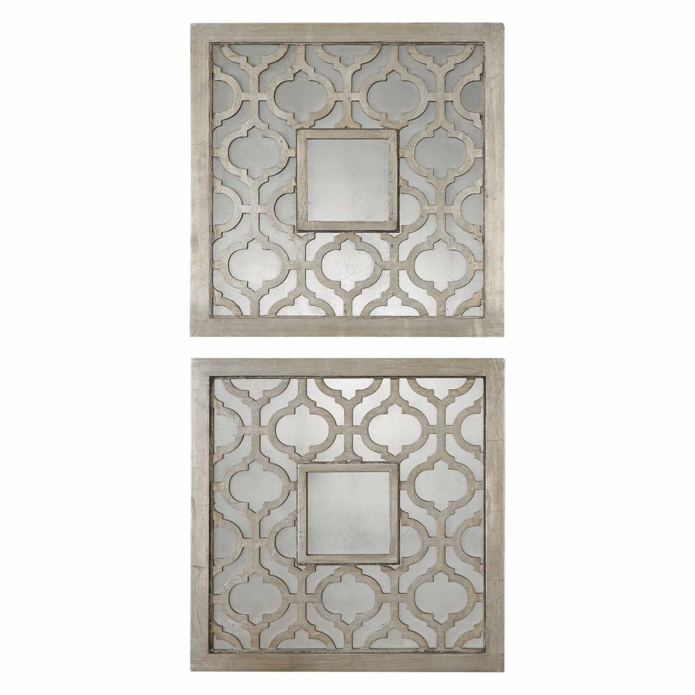 - Antiqued silver leaf finish
