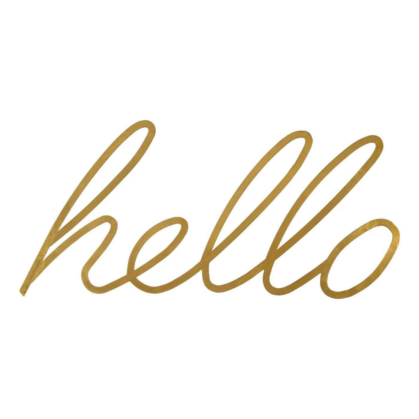 Decorate your living space with the Renwil Hello Irregular Metal Wall Accent. The cursive greeting design is constructed from a single piece of metal and finished in antique gold. Hanging hardware included.
