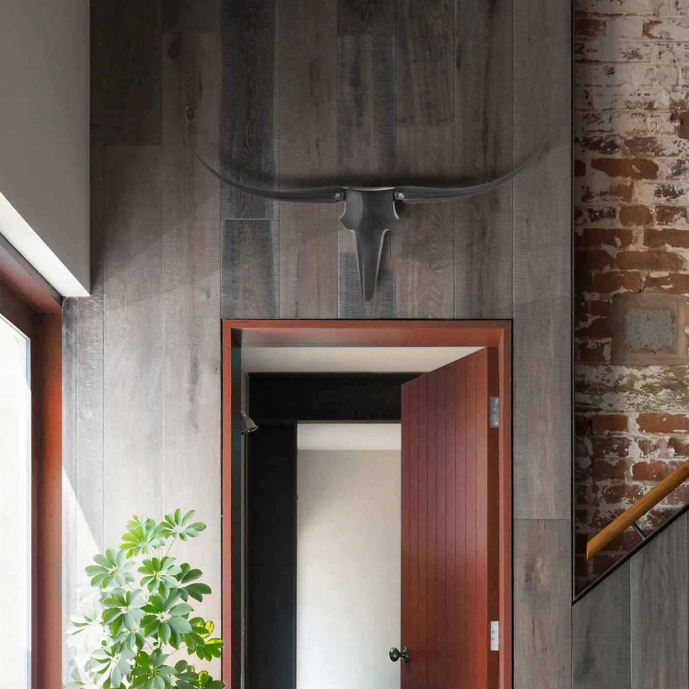 A classic animal skull gets a modern makeover with the Renwil Madryn Irregular Unframed Metal Wall Accent, made of aluminum in a sleek silhouette. Hang this metal wall sculpture in a kitchen or den to give your home a combination of Southwestern-inspired and contemporary appeal. Its bronze finish gives the piece a warm, inviting touch that works well with a wide variety of interior styles.